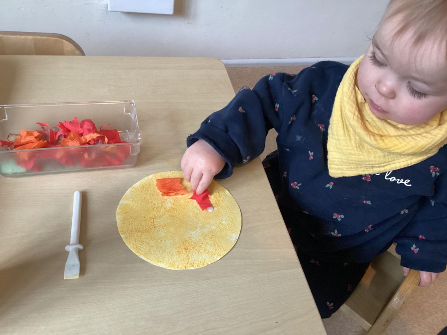 This week Tigers created their own pizza activity using tissue paper, glue and paint.