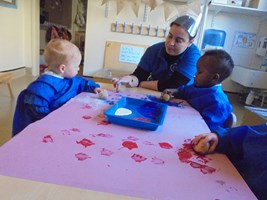 It was Australia Day on Tuesday, Tigers learnt about some of the animals that live in Australia such as a kangaroo, koala and bush babies. Tigers then made an Australia flag using potatoes and red, blue and white paint. They dipped the potatoes in the paint to make marks on the paper.