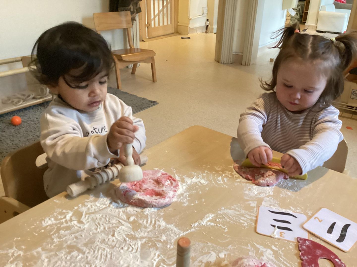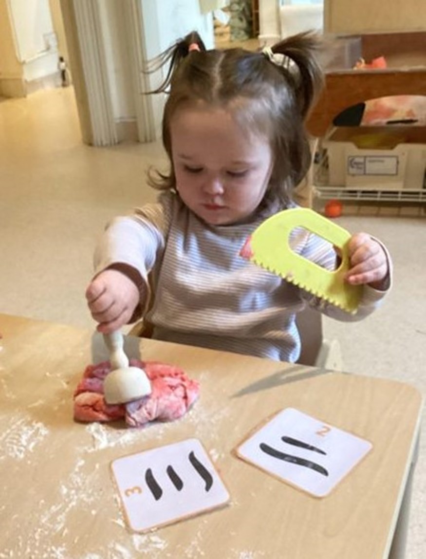 The children enjoyed lots of fun activities for Chinese New Year, they made their own playdough red and orange, they were able to enjoy lots of different activities with the play dough lions enjoyed rolling and making trying to copy the Chinese numbers, while other had plastic knives and forks.
