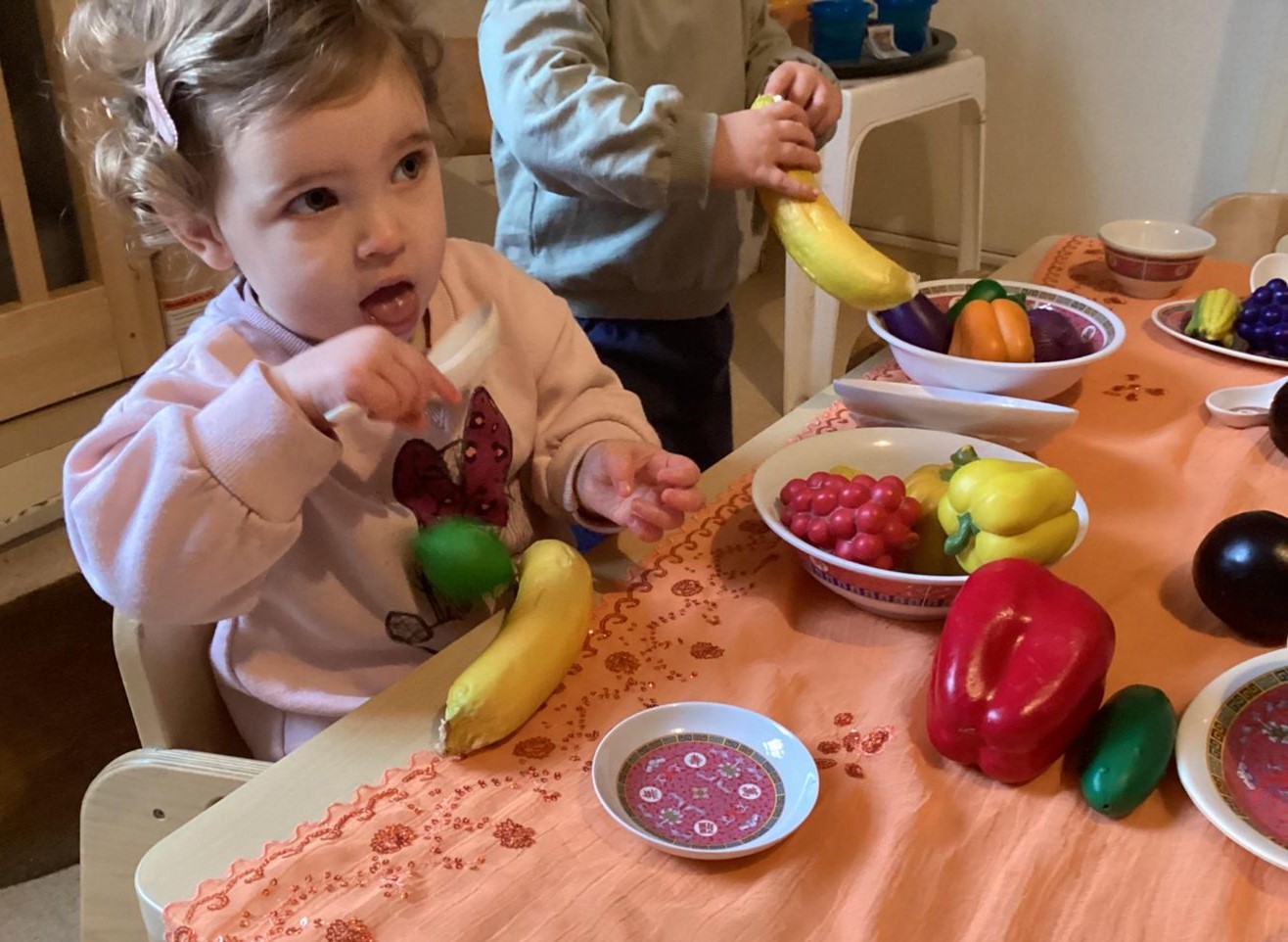 The also had an array of Chinese plates and spoon, that they enjoyed using with the different fruits and they looked at books about how Chinese New Year is celebrated around the world today.