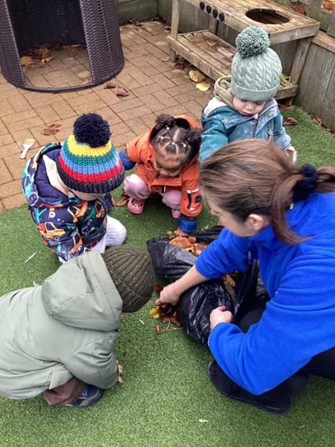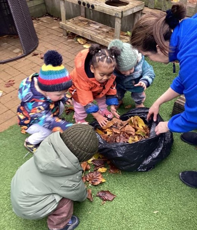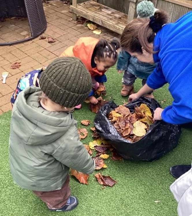 Lions had lots of fun playing with the leaves in the garden and then help to clean them away after they had finished.