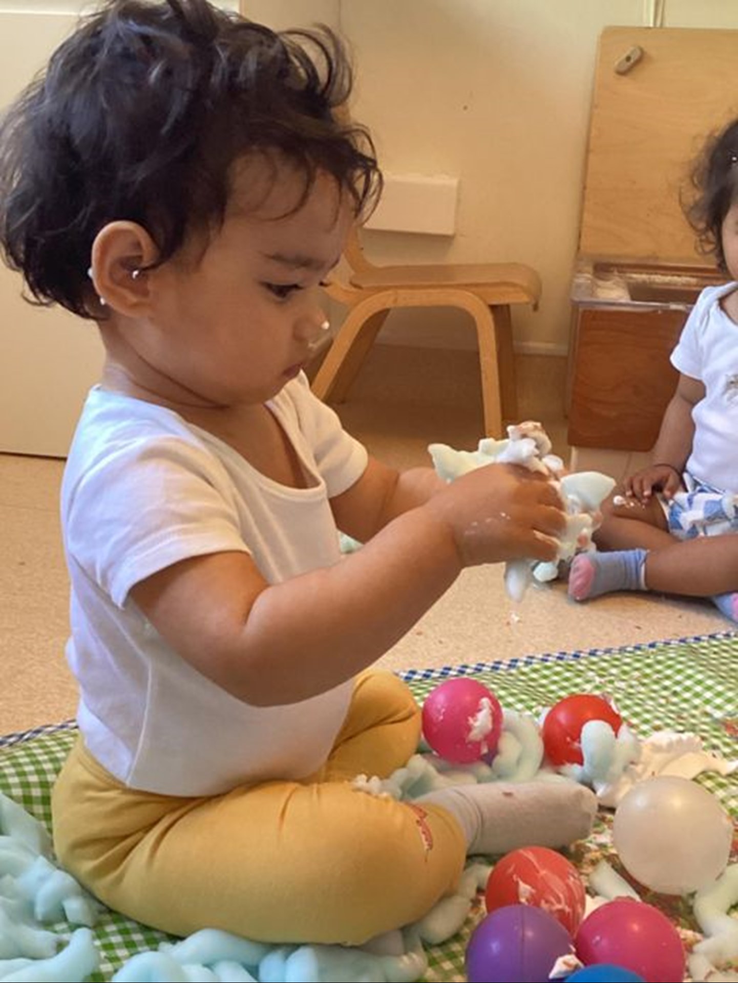 Cubs enjoy their activity using foam and balls, where they were chasing the balls around and trying to picking them up.