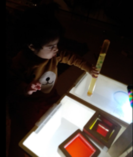 Tigers made their own light box, by using a lamp inside and then they add coloured blocks. The light box provides a creative learning environment, where the children can arrange and look at the details of the objects in a different perspective. They really enjoyed making different patterns using the coloured wooden blocks.