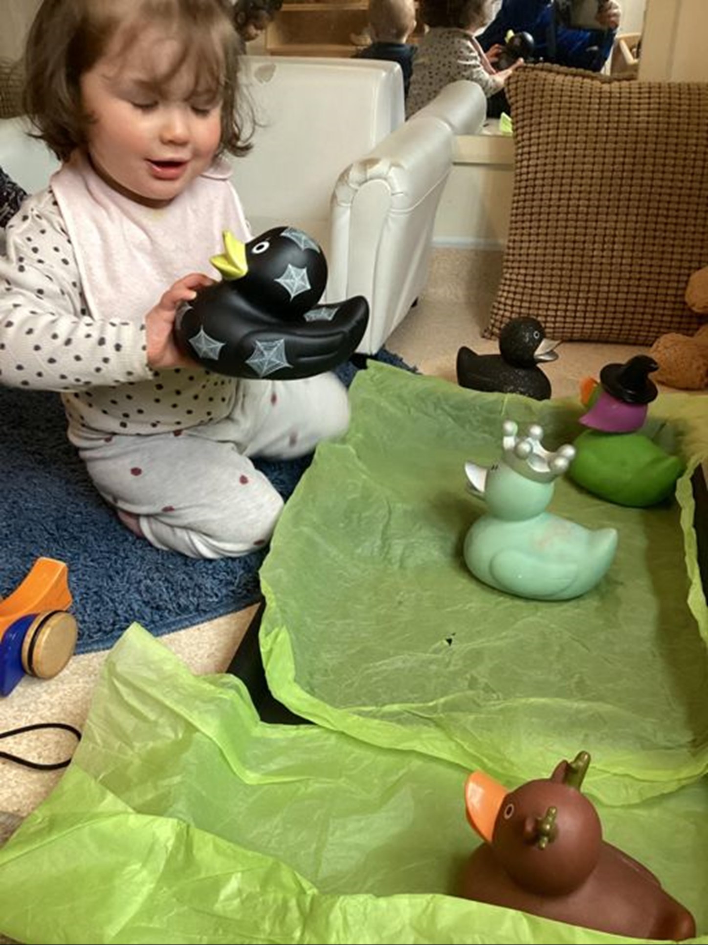 On Wednesday 22nd May it was National Numeracy day and the children in Tigers and cubs enjoyed circle time with lots of props to sing with and one of their favourite was 5 little Ducks, which they extended into a creative activity which they used feathers t create their own duck pictures.