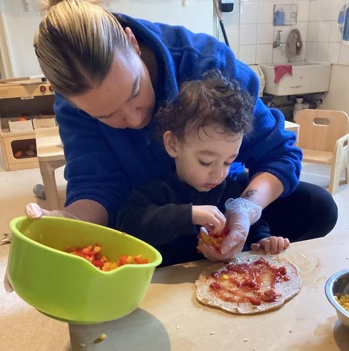 Lions enjoyed making pizza's for the whole nursery on Monday for National Pizza day, they made their own bread base first cooked them on the hot plate and once they had called they added their toppings.