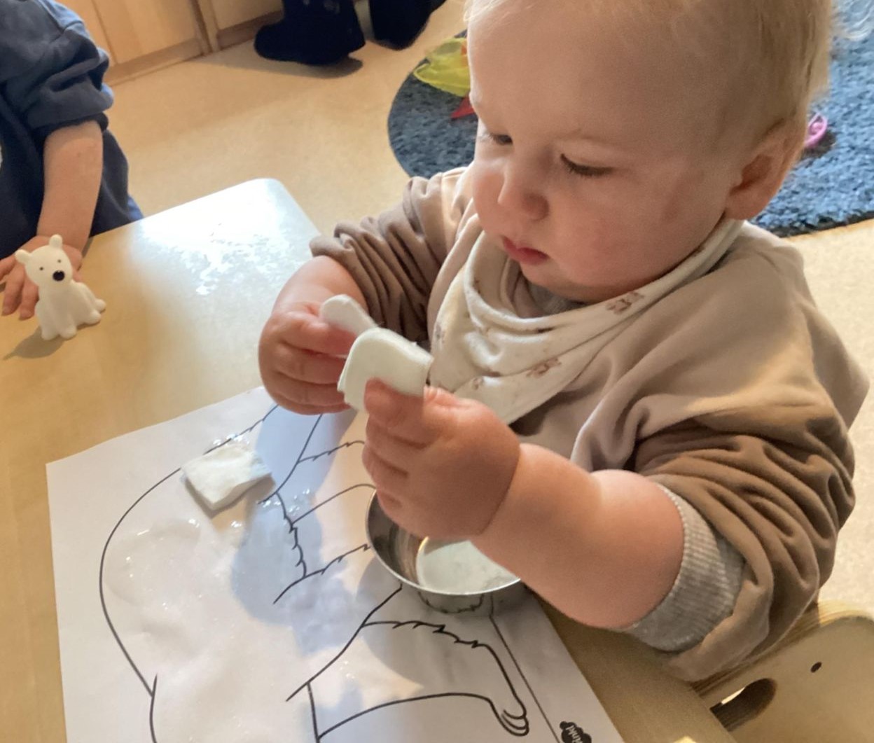 Cubs had been reading 'That's not my Polar Bear' and then went on to create some polar bears by using glue and cotton wool for International Polar Bears day.