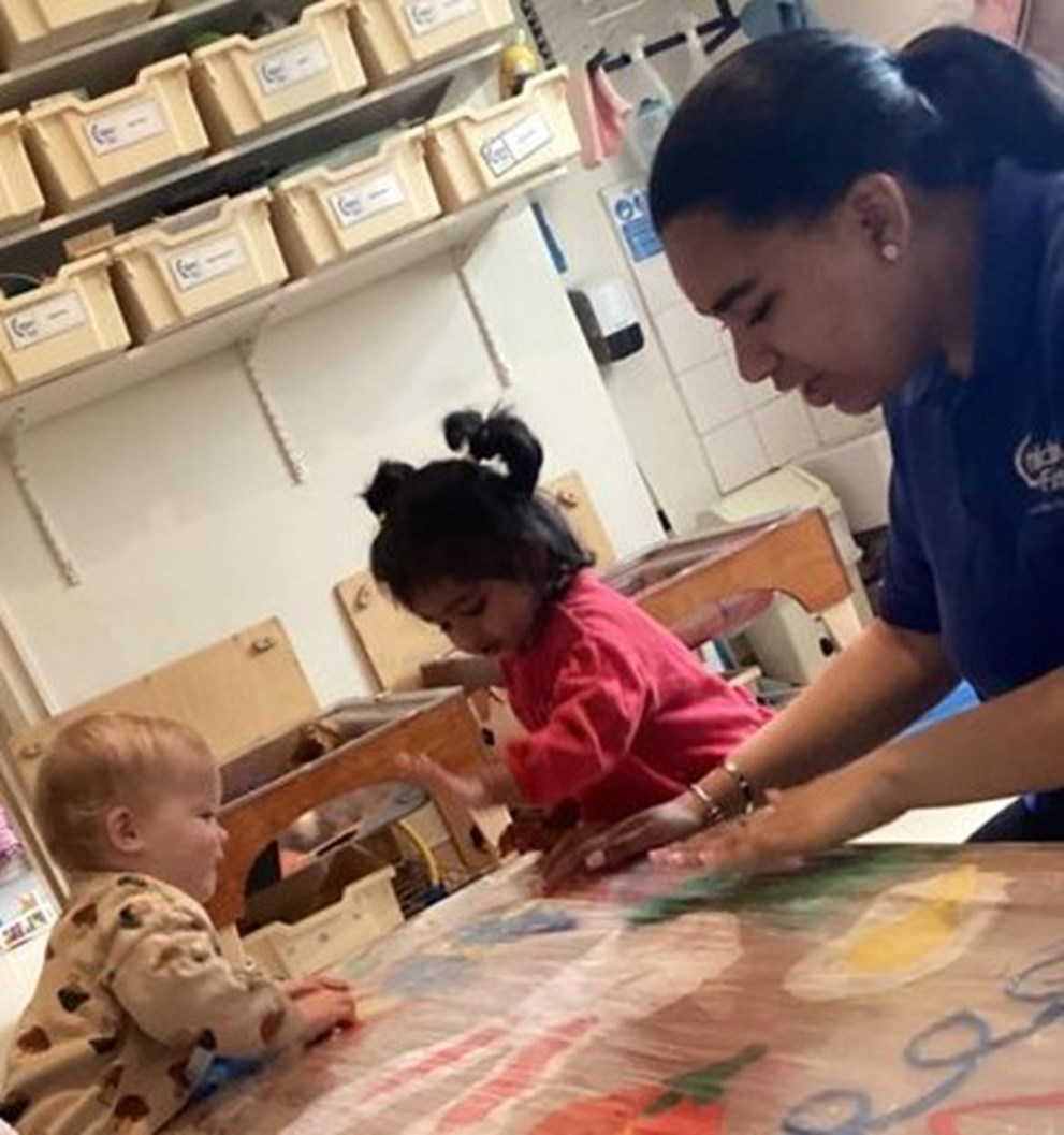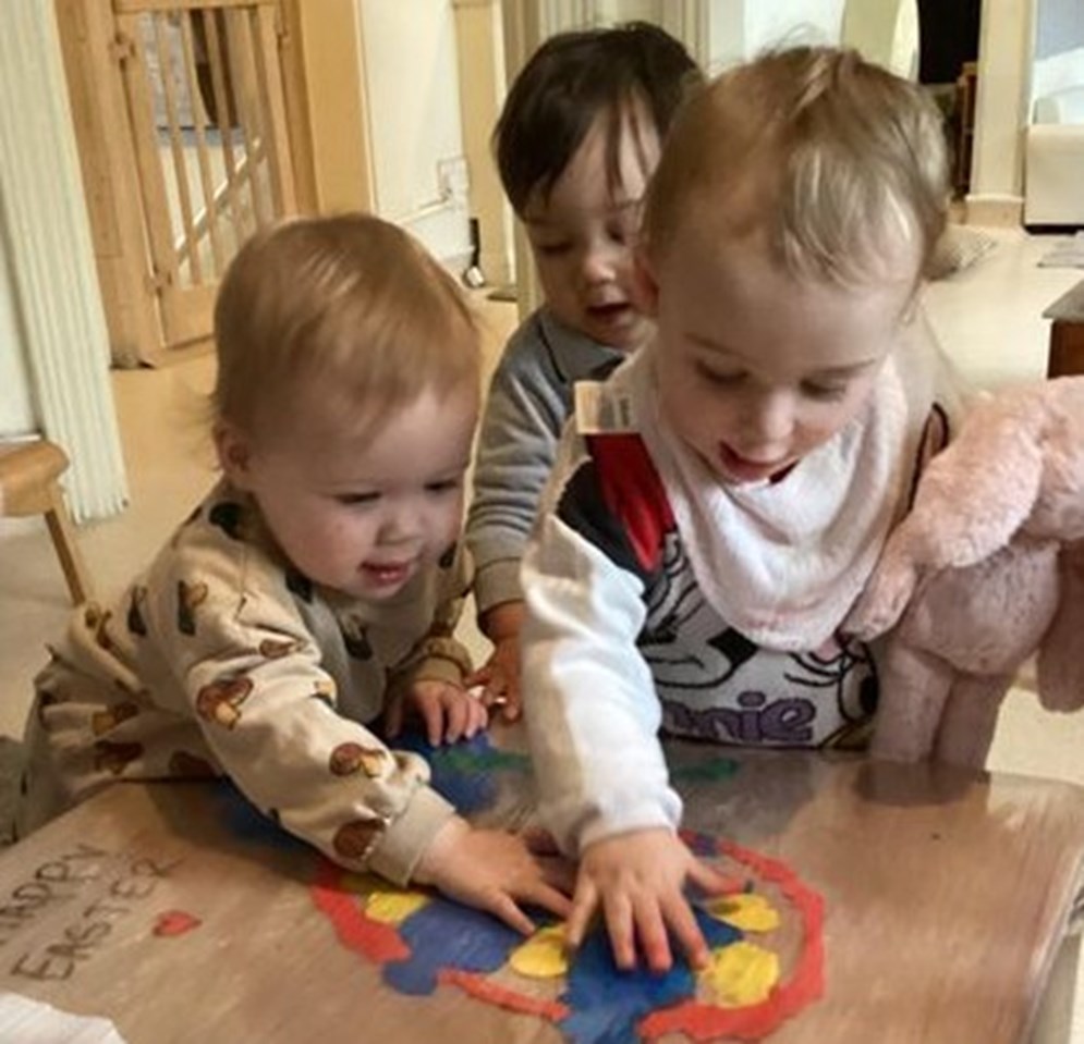 The children in the Lions room enjoying lots of Easter fun activities and one of them was sensory art using cling film, where they are able to rub and squash the paint without getting messy and this really supports those children who do not like to get their hands dirty so it is an all inclusive fun activity.