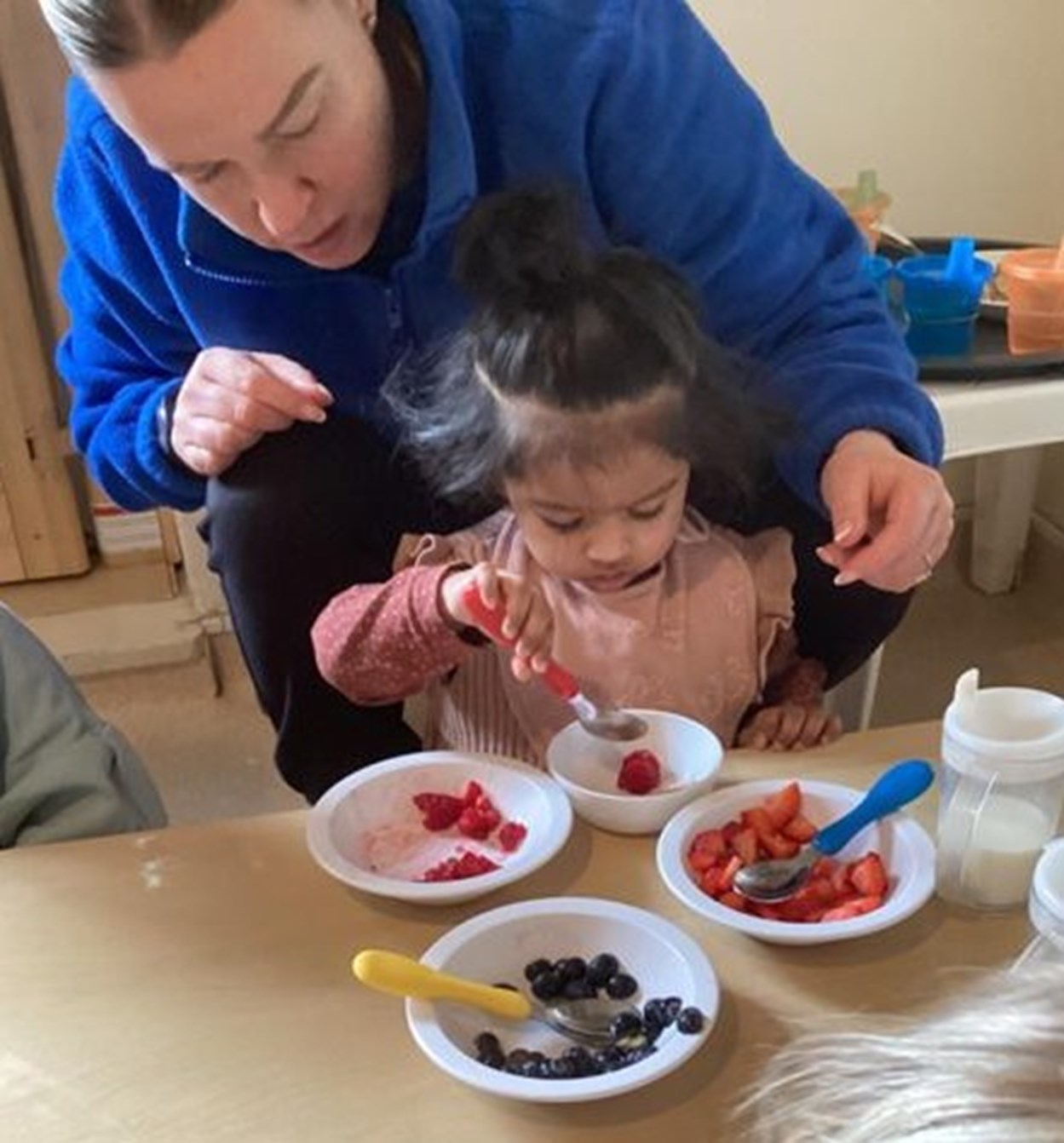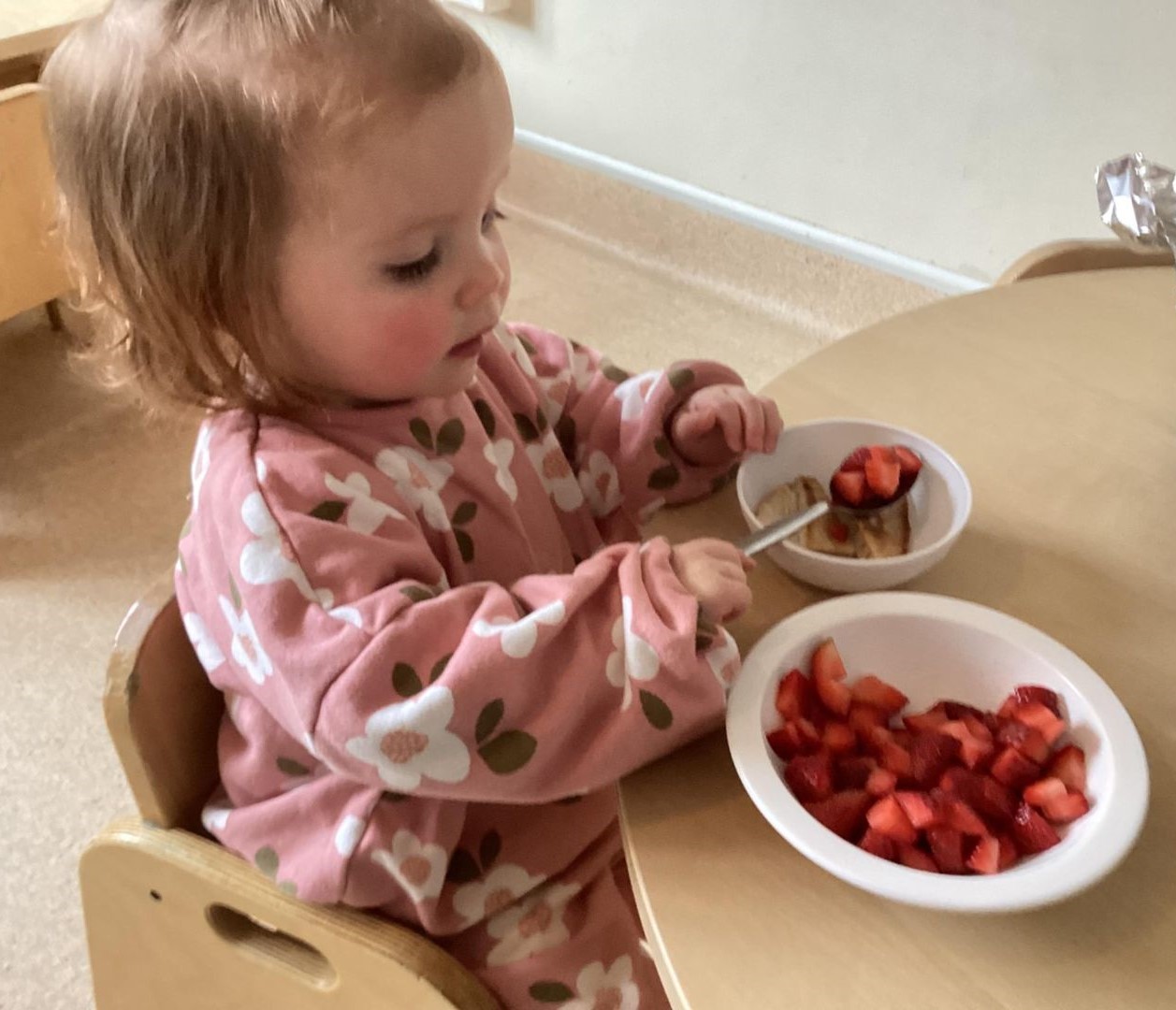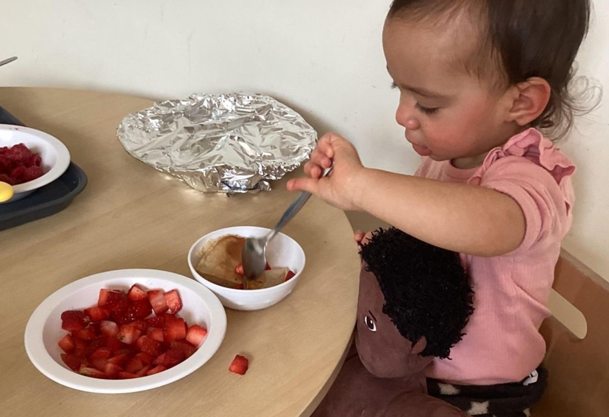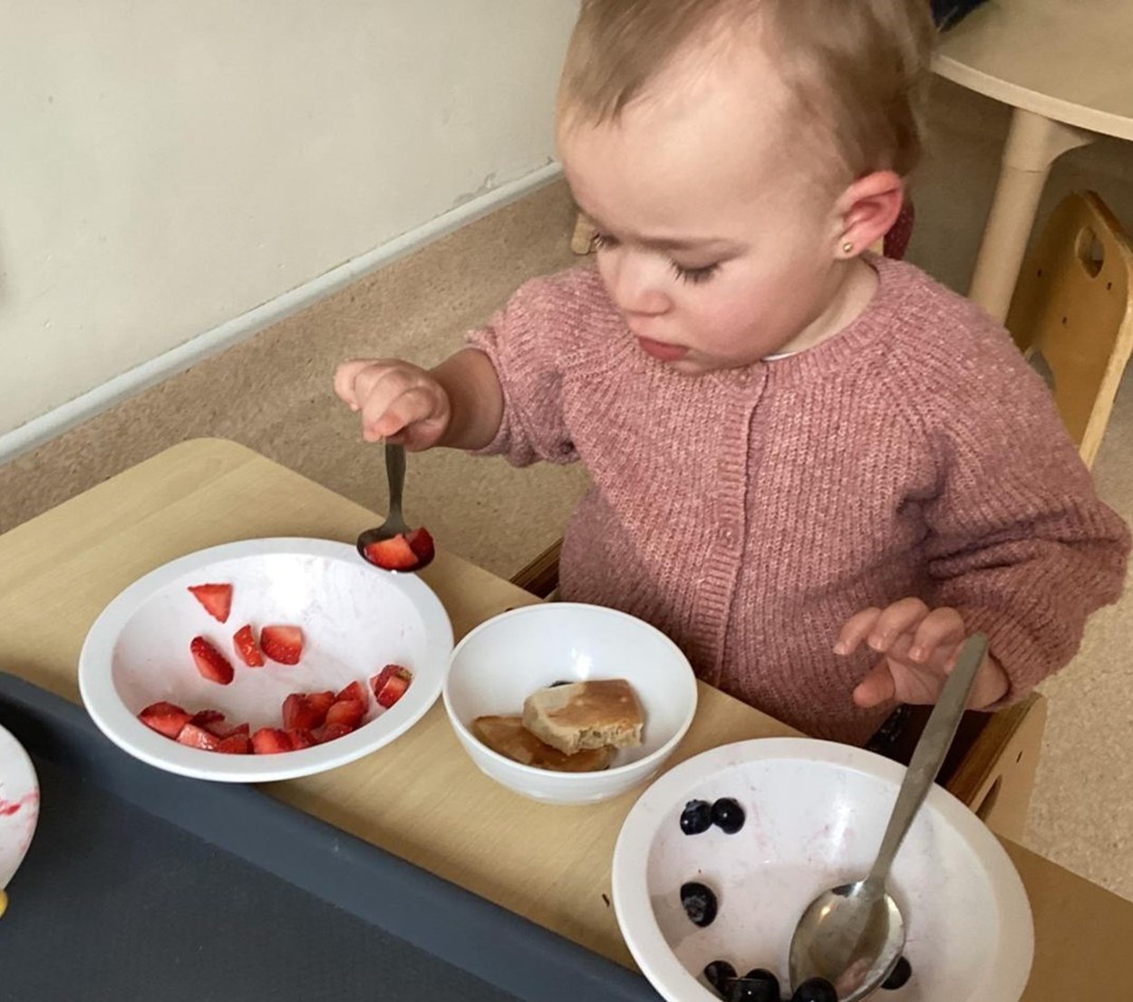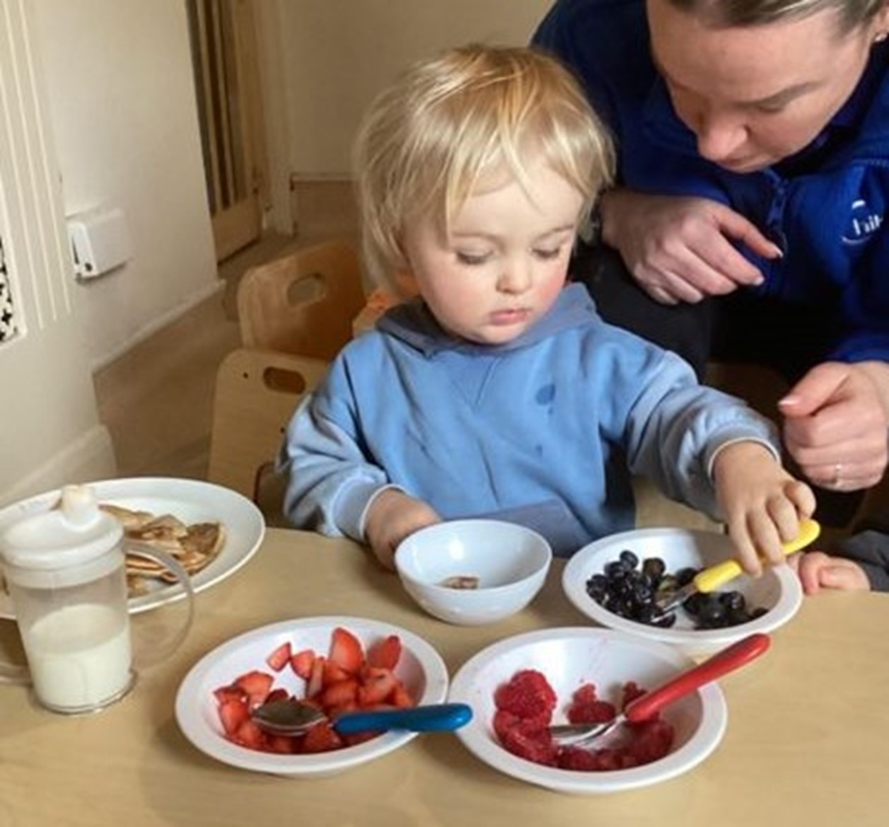 For their snack their were able to choose lots of different fruits to go with their pancakes, there were raspberries, blueberries and strawberries. Which allowed the children to choose what they wanted to add to their pancakes.