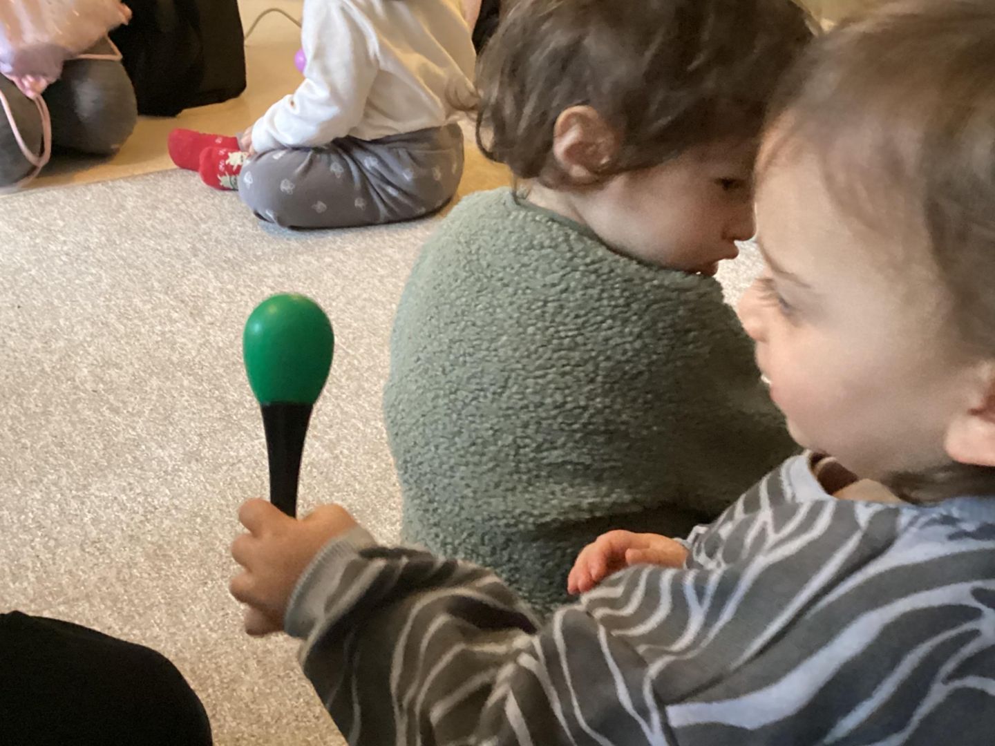 Today we had a new teacher called Christina who works for Tiny Mites Music. The children really enjoyed learning the new songs with lots of time to dance, play with musical instruments and then popping the bubbles.