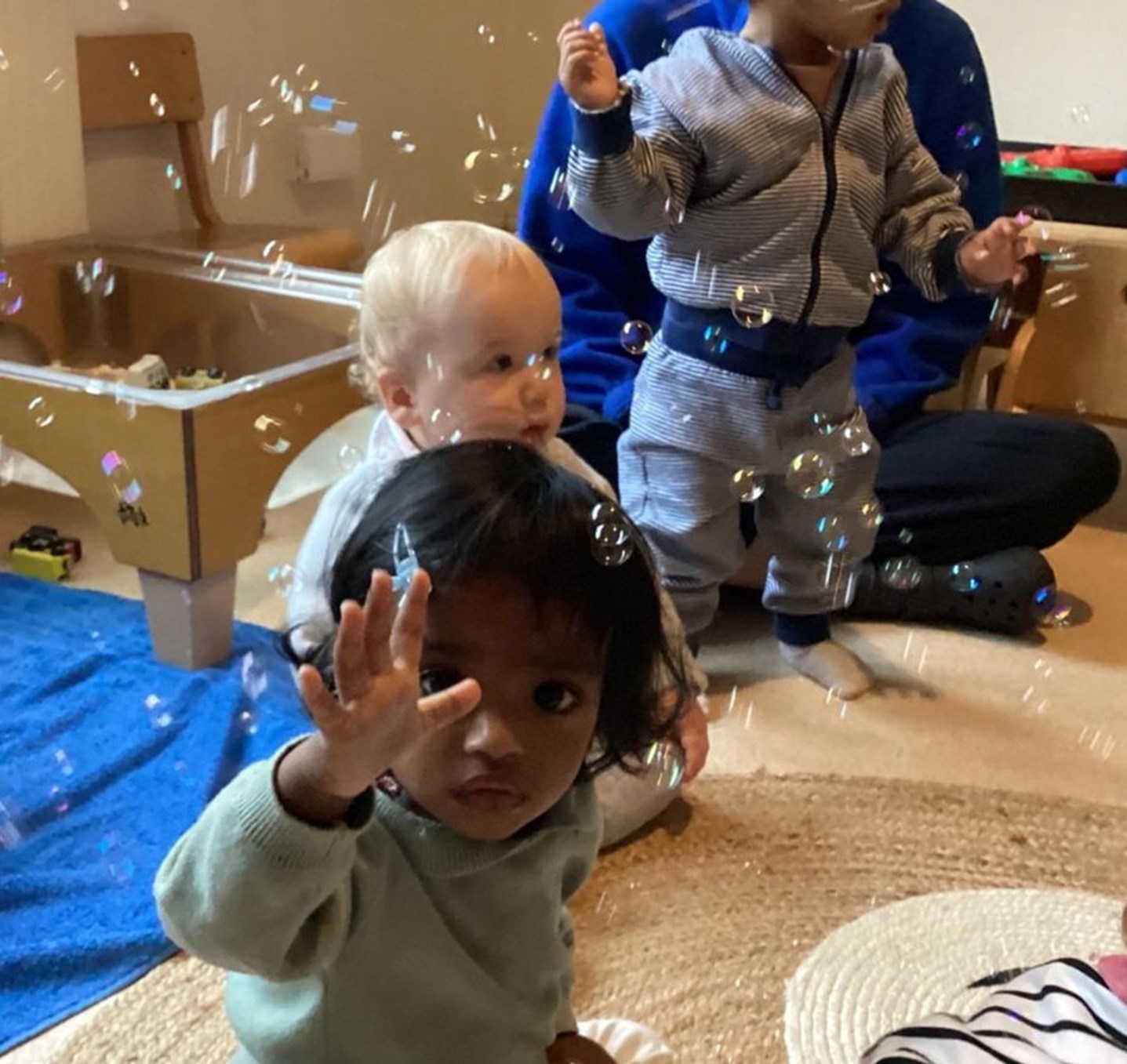 Tigers enjoying Bethany our Tiny Mites Specialist teacher, where they have lots of fun with the bubbles and all the songs they sing as well as lots of different props and musical instruments.