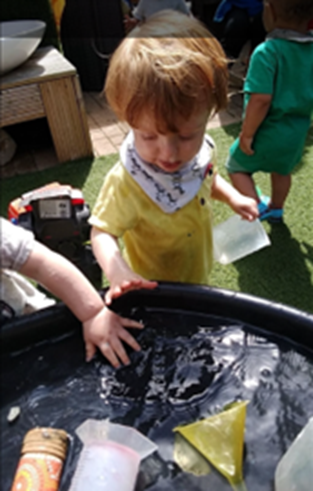 Water play activities help to develop and strengthen children's gross and fine motor skills. Children enhance their gross motor skills, coordination and physical fitness through lifting, pouring, carrying, running and splashing.