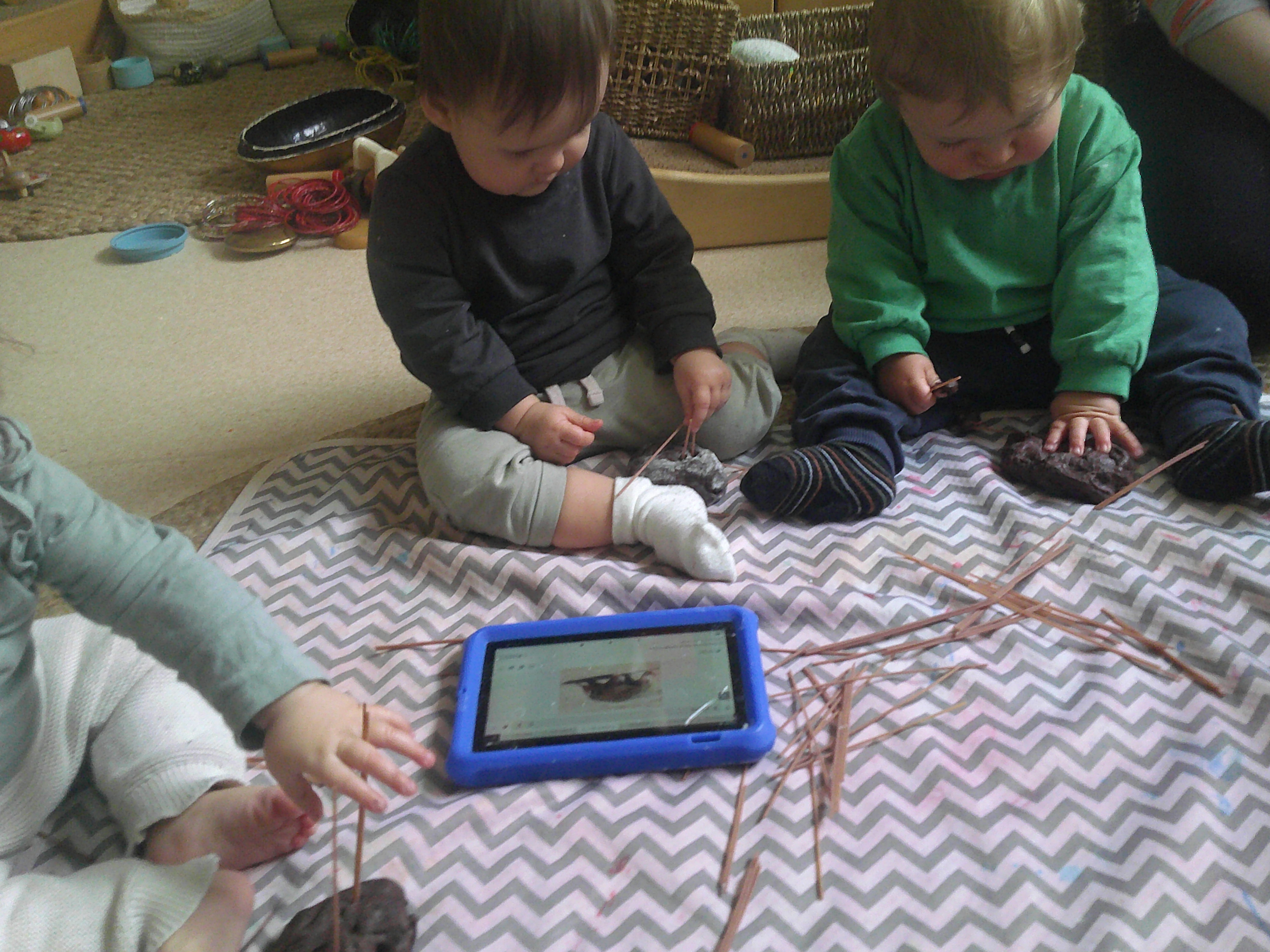 To celebrate Australia day in baby room we used playdough and spaghetti to make Echidna. We used the tablet to look at pictures of Echidna and watch how they move around. We were very interested in their spikes. We then enjoyed using our fine motor skills to stick the pasta onto the playdough to create our own Echidna.