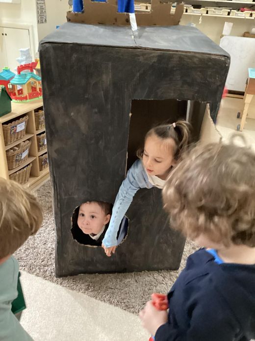 Our pre-schoolers were thrilled to receive a huge cardboard box generously donated by the builders in our complex. With big imaginations and even bigger ideas, the children decided to transform the box into a majestic castle!