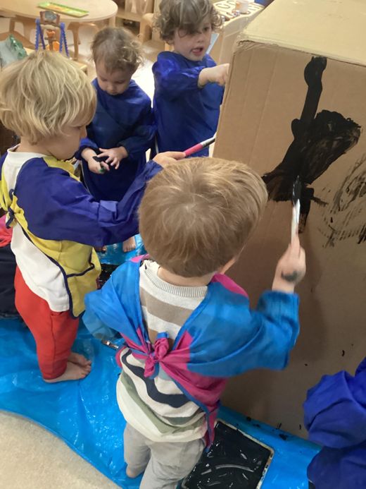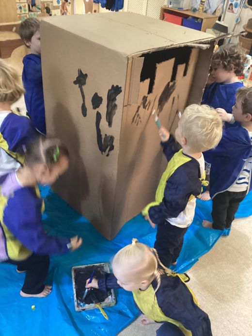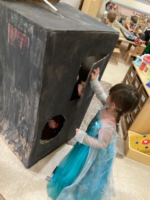 At last, the castle was ready! The children dove into imaginative play, declaring “I’m the queen!” or “I’m the king!” and using our dressing-up clothes to bring their royal characters to life. The activity beautifully combined creativity, teamwork, and imaginative play, turning a simple box into a magical world of their own. Well done preschool, we have loved watching your creativity come to life!