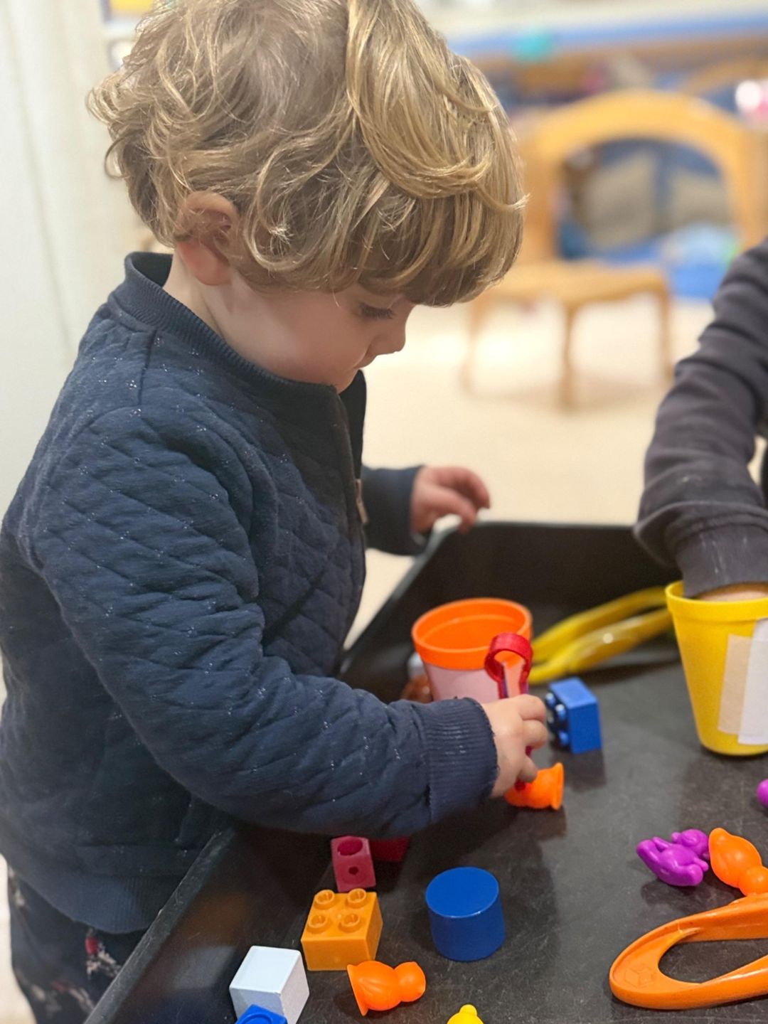 Our toddlers enjoyed a hands-on sorting activity using bright, colourful objects and small bowls. They carefully picked up each item with their fingers and sorted them by colour and quantity.