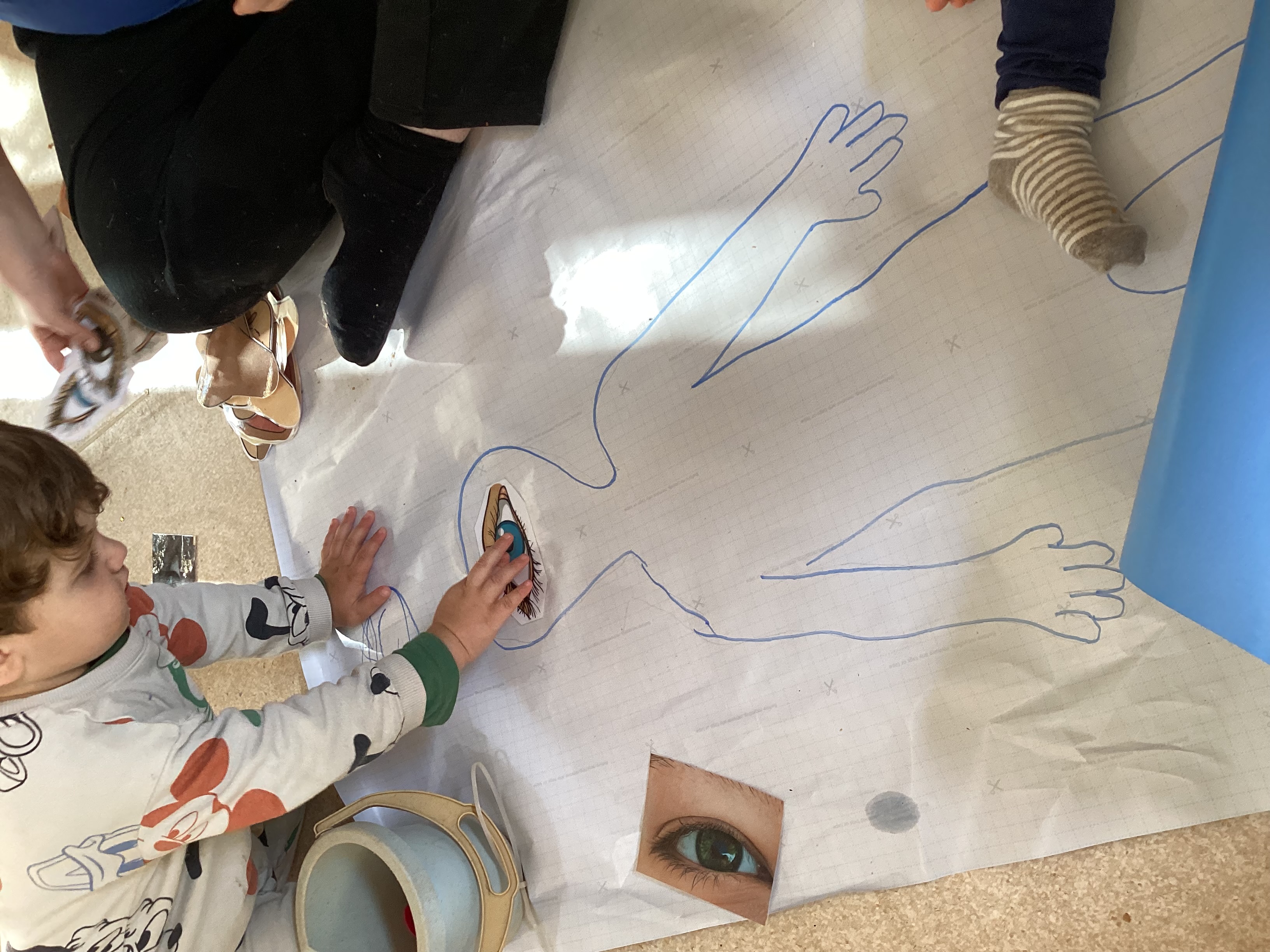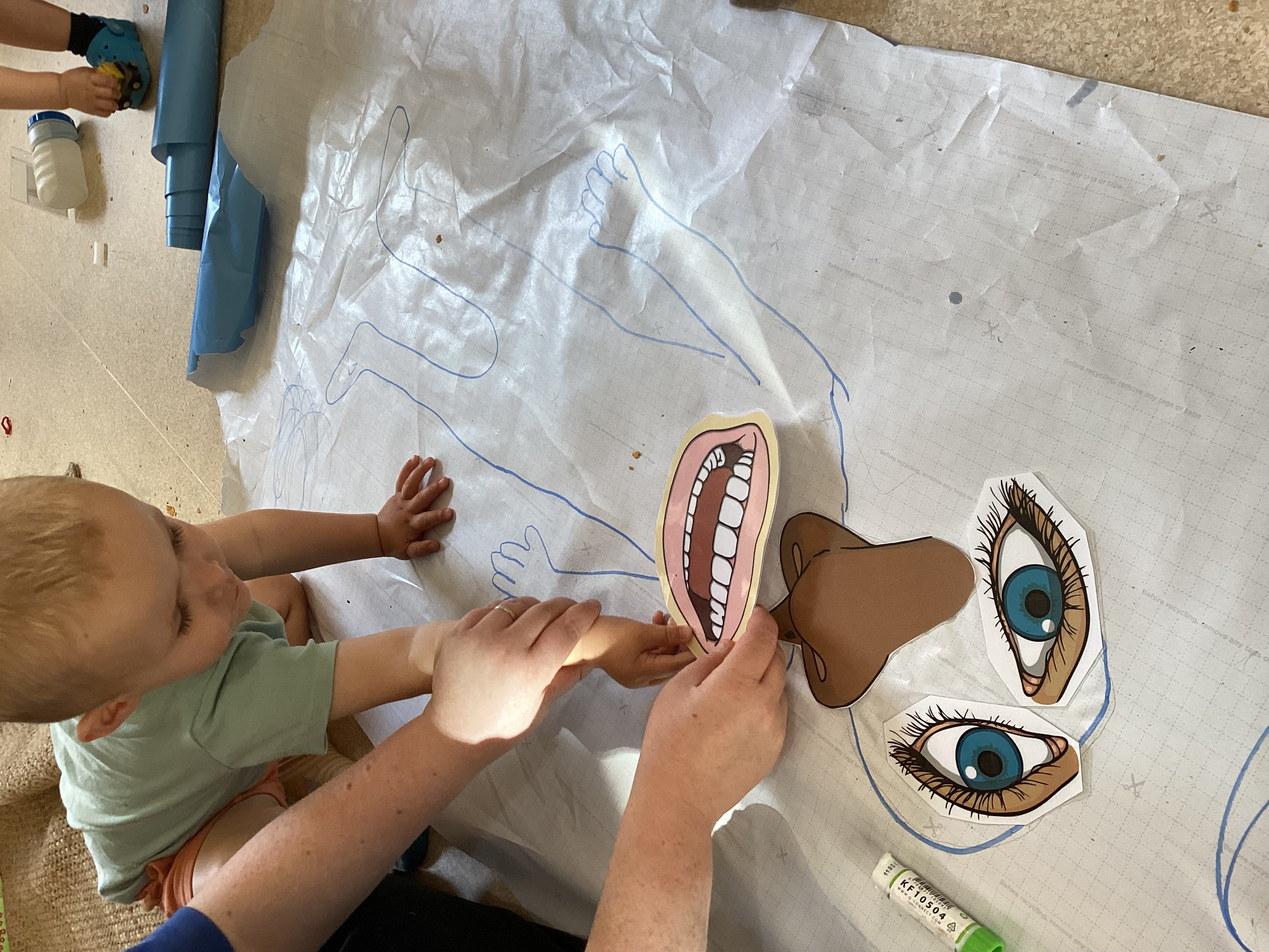 In the toddler room this week we continued our all about me topic by looking at ourselves and our features. During small group times we talked about our features and how everyone is different. We explored our eye colours and hair colour through mirrors and discussions with friends. We then extended this by creating our own person. We drew around our friend and stuck on some features. We enjoyed choosing different eyes, noses and mouths and comparing how they all looked together. We then used paint to add some handprint hands. We all decided that we didn’t want our person to have feet, so we gave them extra hands. We added some spaghetti hair to go on top. We next found some clothes for them. Some of us chose some dungarees for them to wear. To further extend this we explored some playdough where we made our own people. We used our hands to mould and create the different features we wanted to add. Well done toddlers, what a great week of learning.