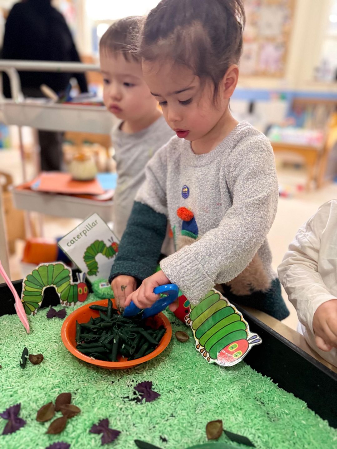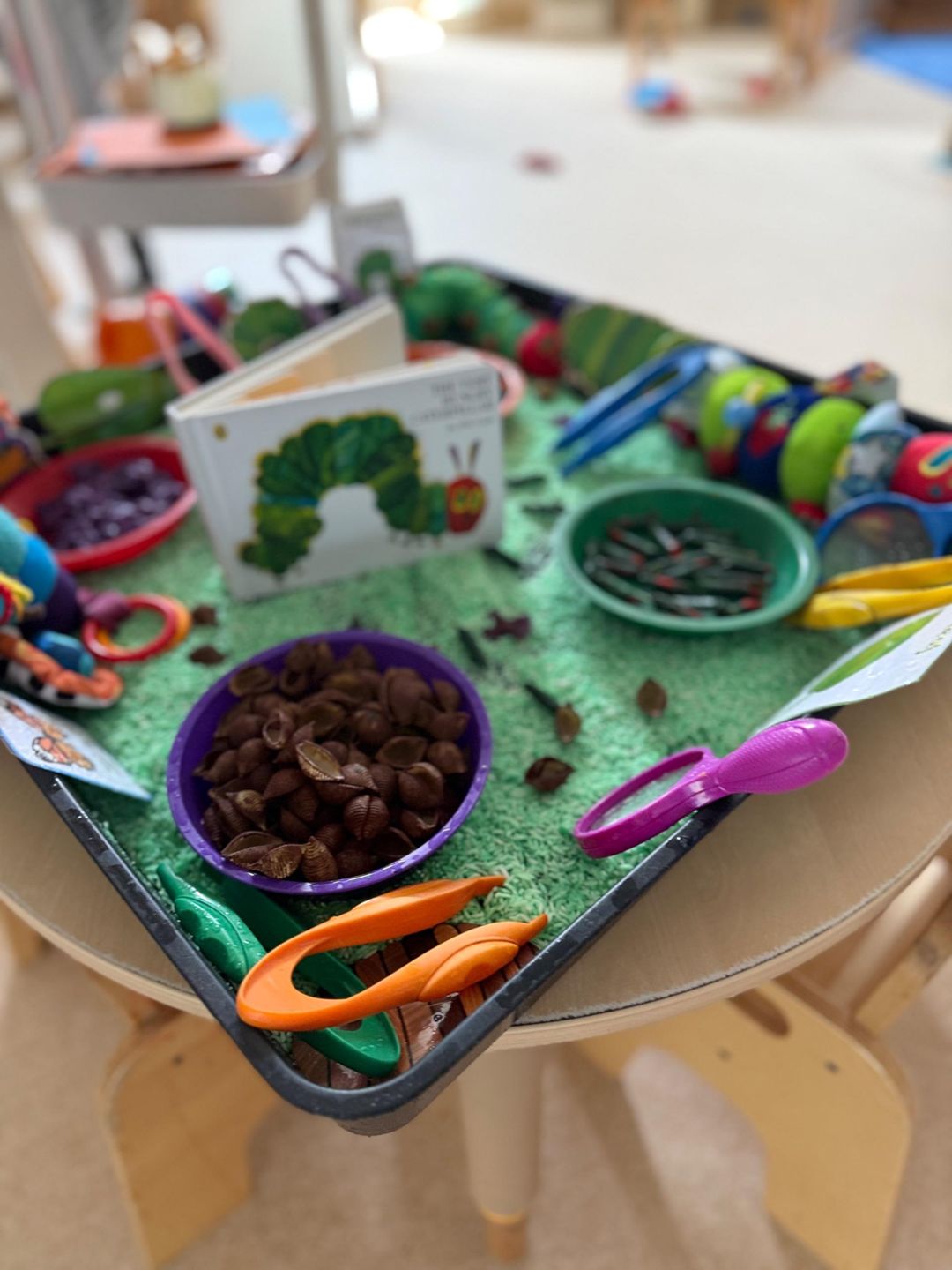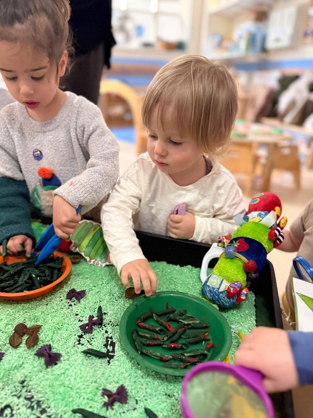 This week in the toddler room, the children explored the life cycle of a caterpillar. We followed the story The Very Hungry Caterpillar, which helped introduce key concepts in a fun and engaging way. The children enjoyed learning about sequences through the story, including the days of the week and the different stages of the caterpillar’s life cycle.