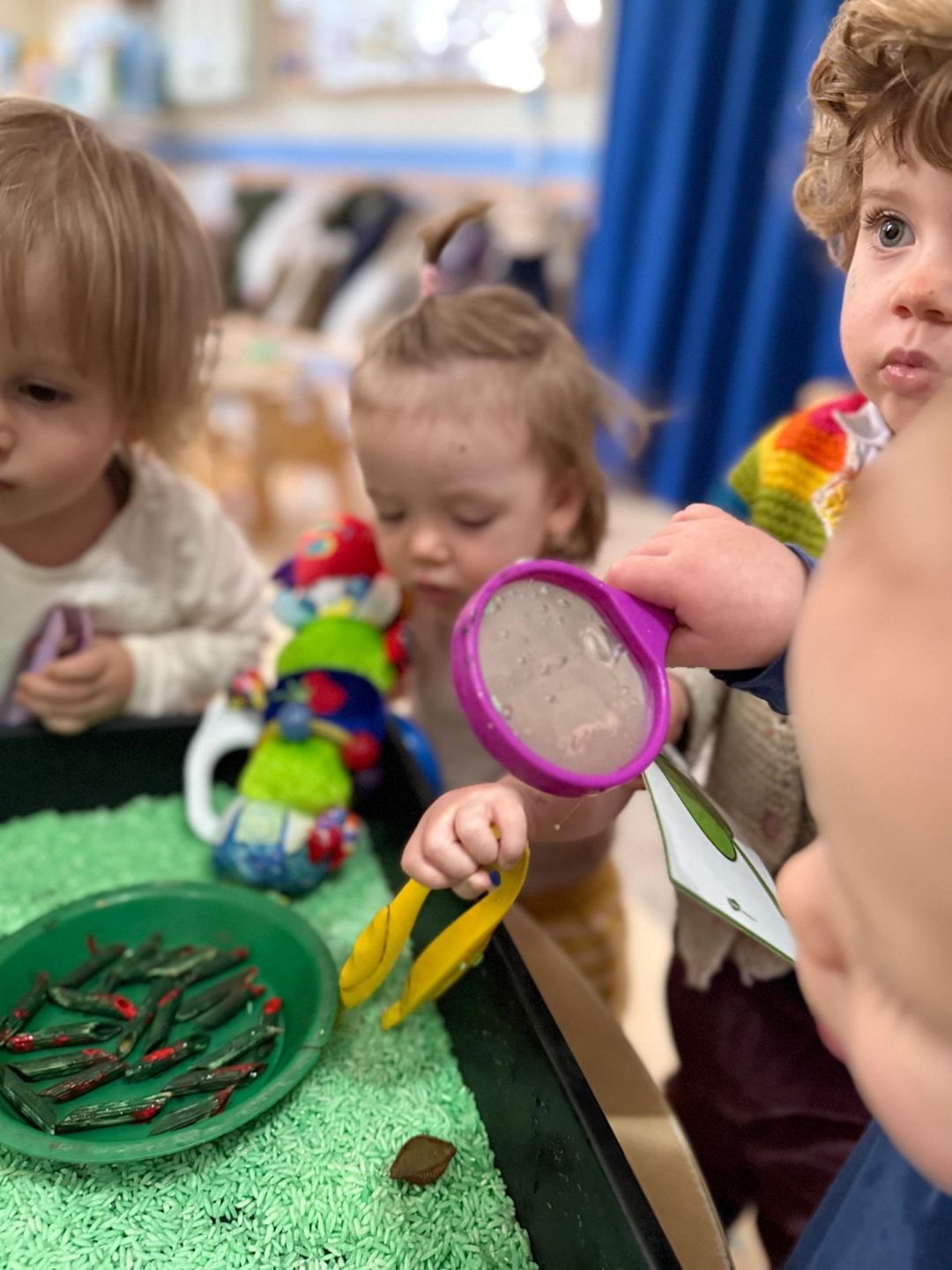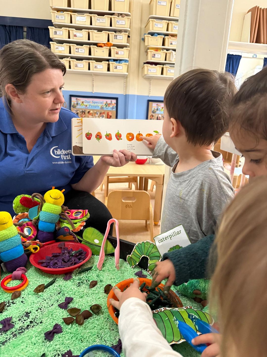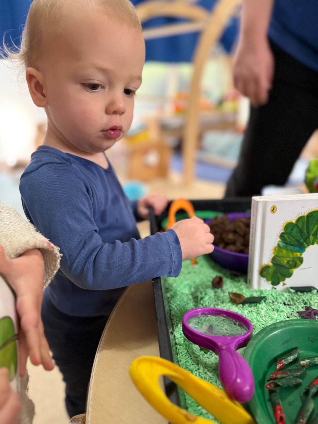 This week in the toddler room, the children explored the life cycle of a caterpillar. We followed the story The Very Hungry Caterpillar, which helped introduce key concepts in a fun and engaging way. The children enjoyed learning about sequences through the story, including the days of the week and the different stages of the caterpillar’s life cycle.