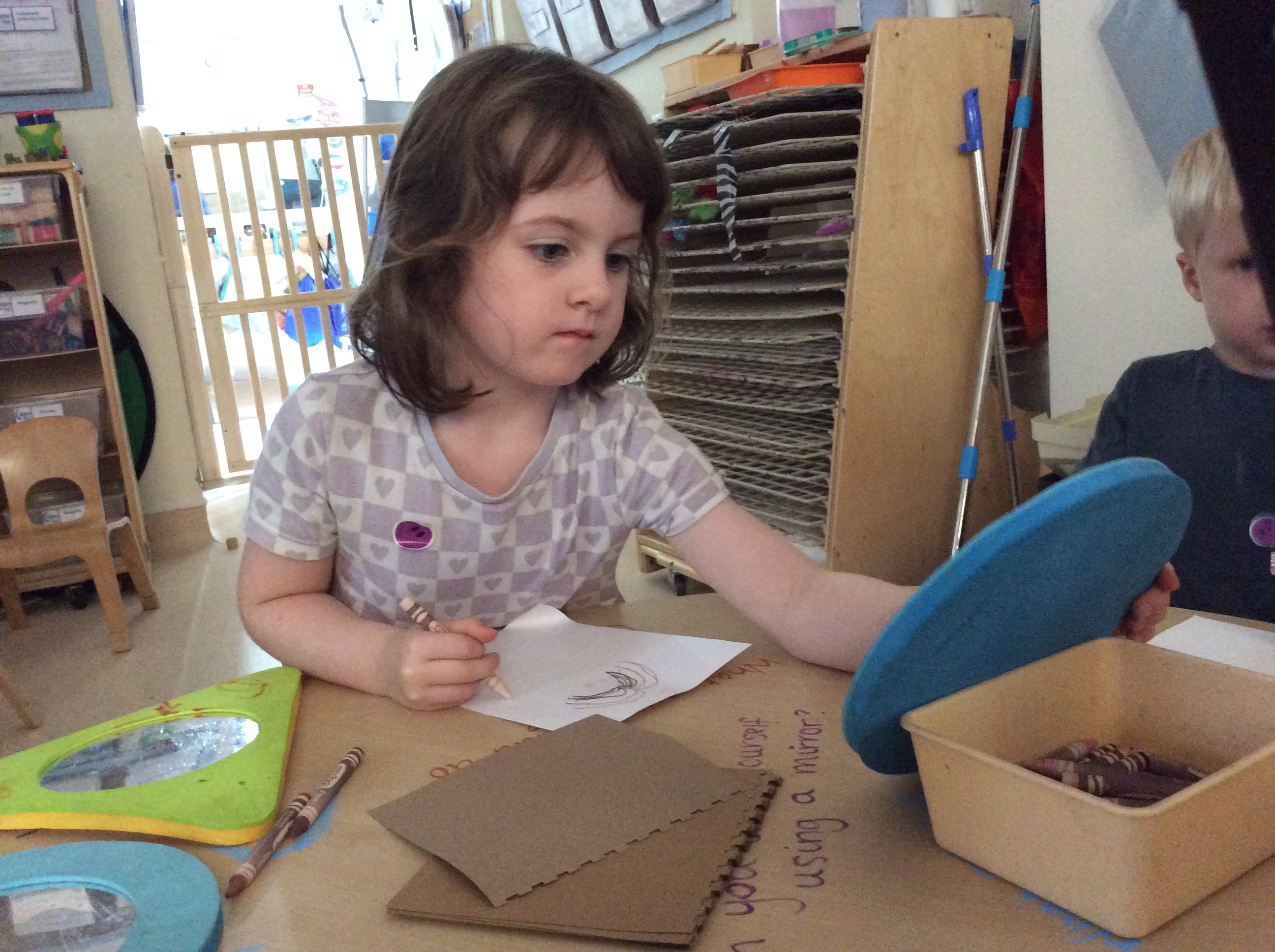 We continued our topic by drawing pictures of ourselves, we used the mirrors and skin toned crayons to draw our more defining features. We spoke about how we are all different and all special in our own unique way. We introduced colours to our pictures to when we were drawing our hair and eyes.
