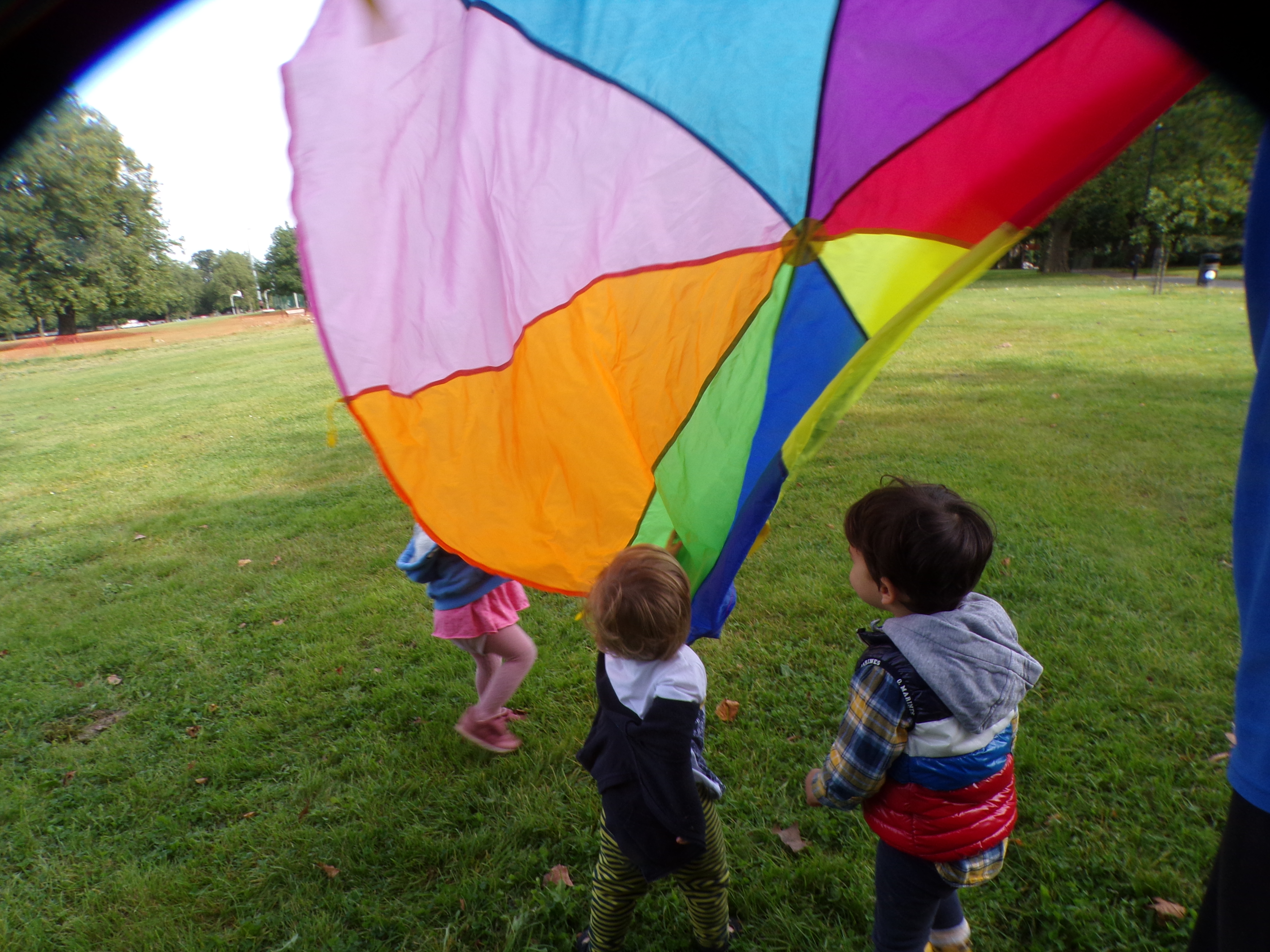 The children loves parachute games and the effect of the wind with the parachute and movement. During the walk enjoyed discussion what they could see on the way.