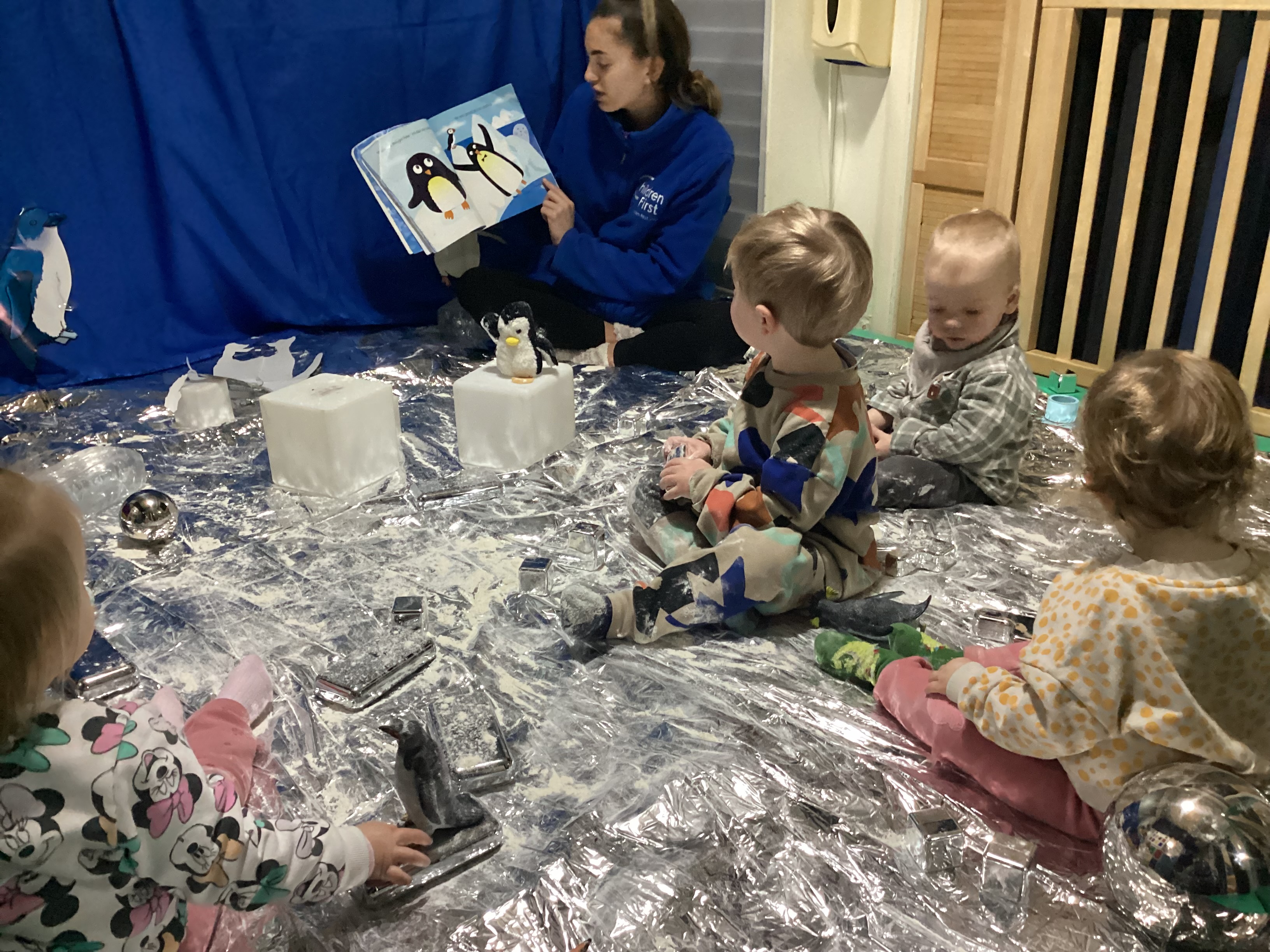 To celebrate penguin awareness day the toddlers went on an expedition in the sensory room to search for different types of penguins. During our arctic adventure we were able to explore the different sizes of different species of penguin. Some are tall and some are really small. We enjoyed role playing with the different penguins creating our own habitats using different materials.