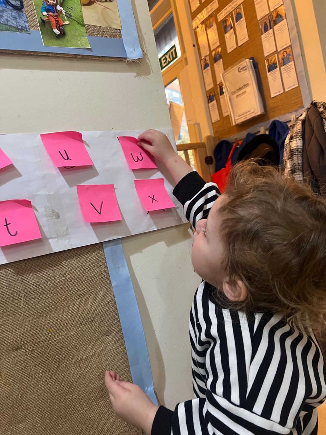 This activity was to promote recognition of letters, and encourage the children to get familiar with both uppers cases and lower cases, reassuring them that they’re the same letters but look different. Some of the preschoolers were rapid to complete their post its, because they were familiar with the letter, e.g, their name, favourite animal or place etc. However, there was some children that didn’t feel so confident and needed some assistance because they wasn’t used to either the lowercase look or uppercase.