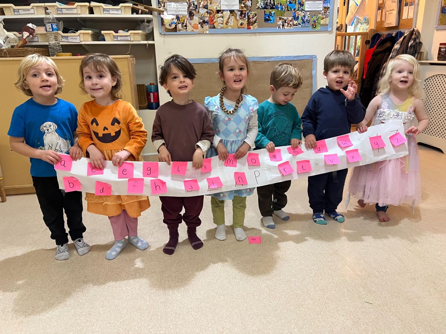 This week in preschool, as a team the children engaged in a practical literacy activity of matching. There was a stretch of paper taped on the wall presenting all the alphabets in the Upper case form, and all around the classroom was post it notes, presenting letters in the lowercase form.