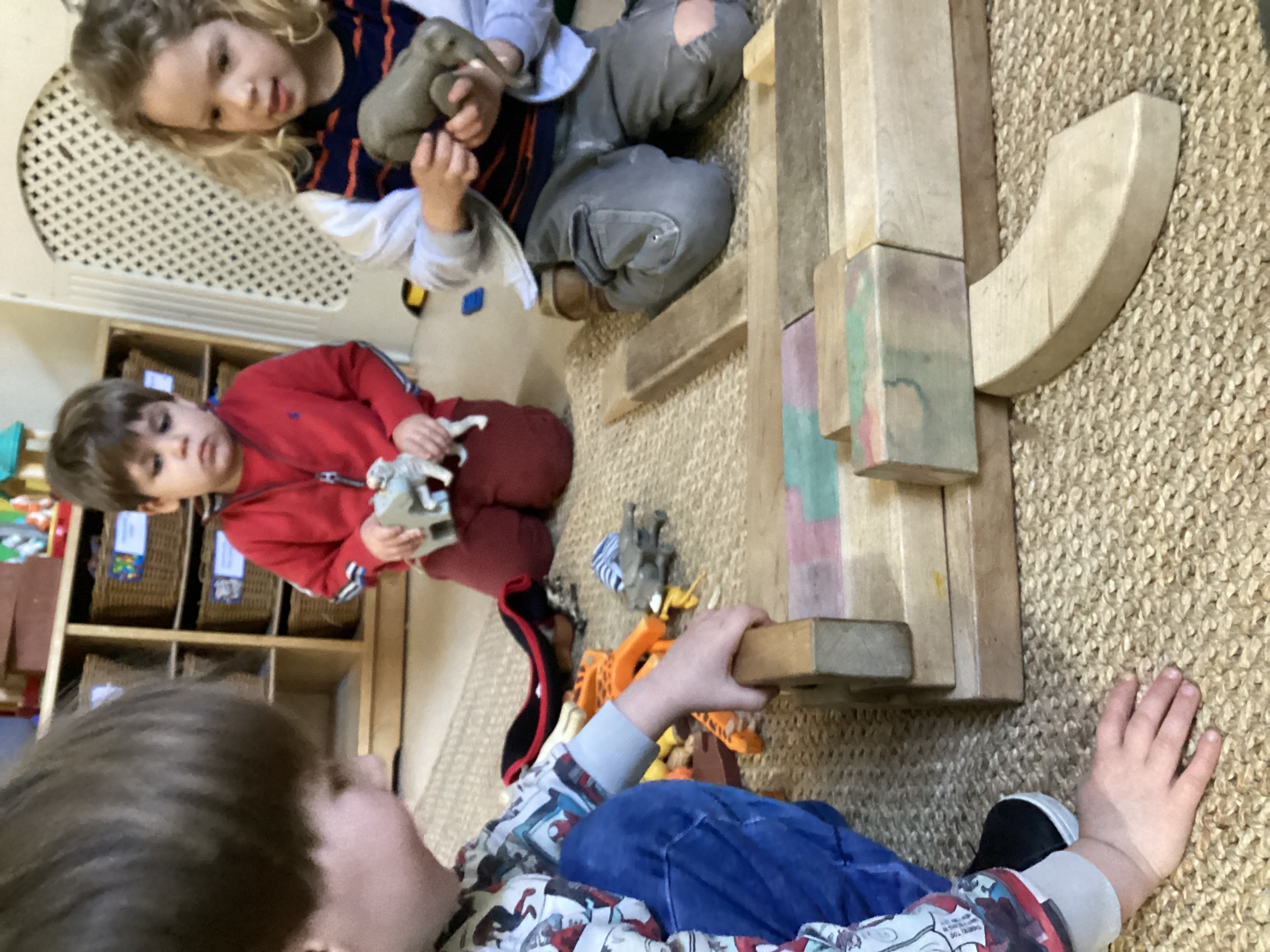 This week in preschool, we focused on storytelling in celebration of world book day! The children were split into different groups, they were given a theme and different building materials. One group had fairies, another had animals and the final group had play people. The materials they used were wooden blocks, magnetic tiles and Lego to build their small worlds. The children used their imagination and story telling skills to create buildings, vehicles and even tunnels. The children said “our boat is so strong” and “this is for the fairies!” One told the story of the different animals in the zoo. They said “giraffes have long necks and the animals can go into the treehouse we made to see them!”