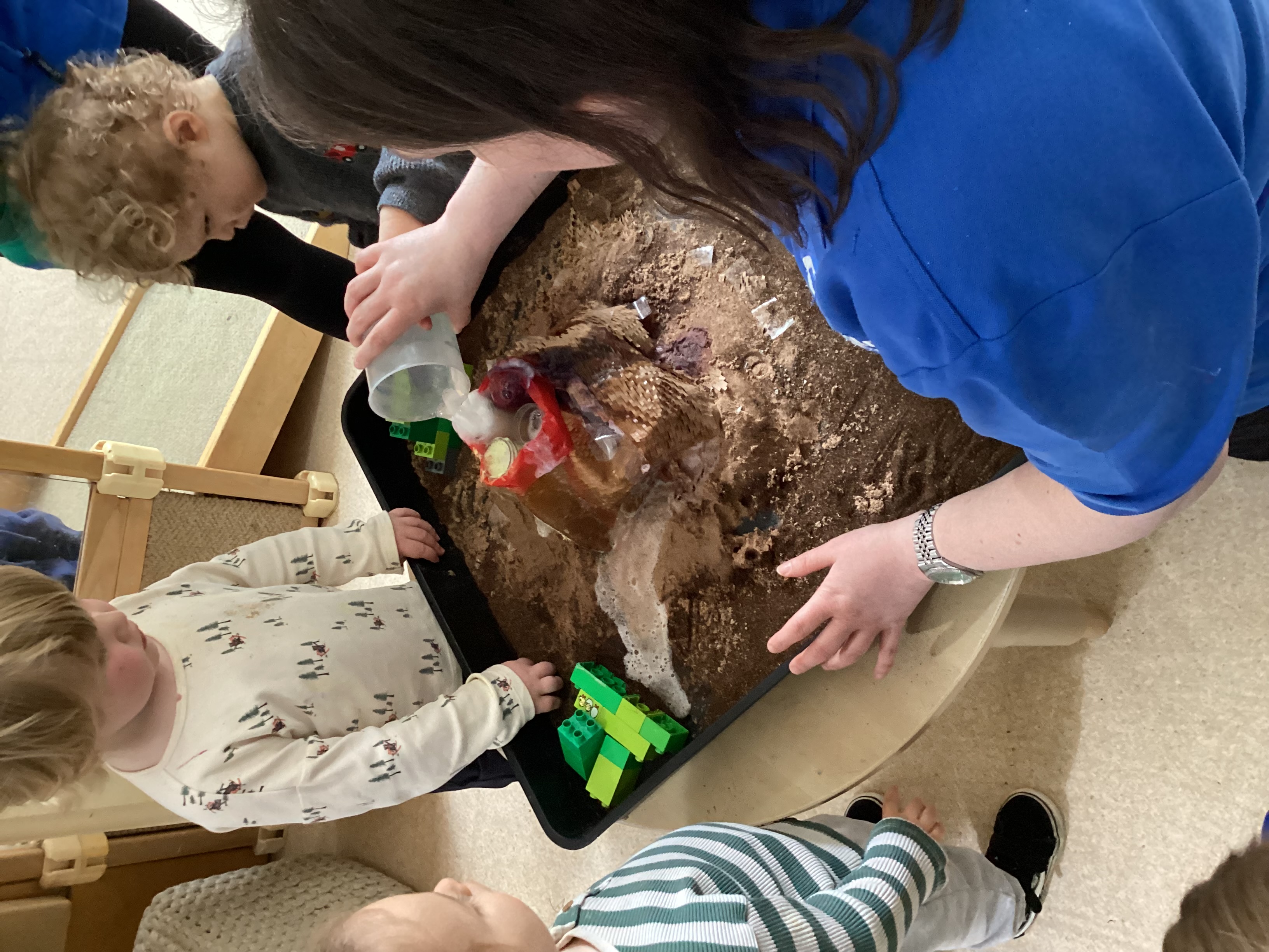 For science week the babies turned into mini scientists and created their own potions using coloured water, lemons limes and flowers the babies really enjoy water play currently so this is an activity they instantly became engaged in.