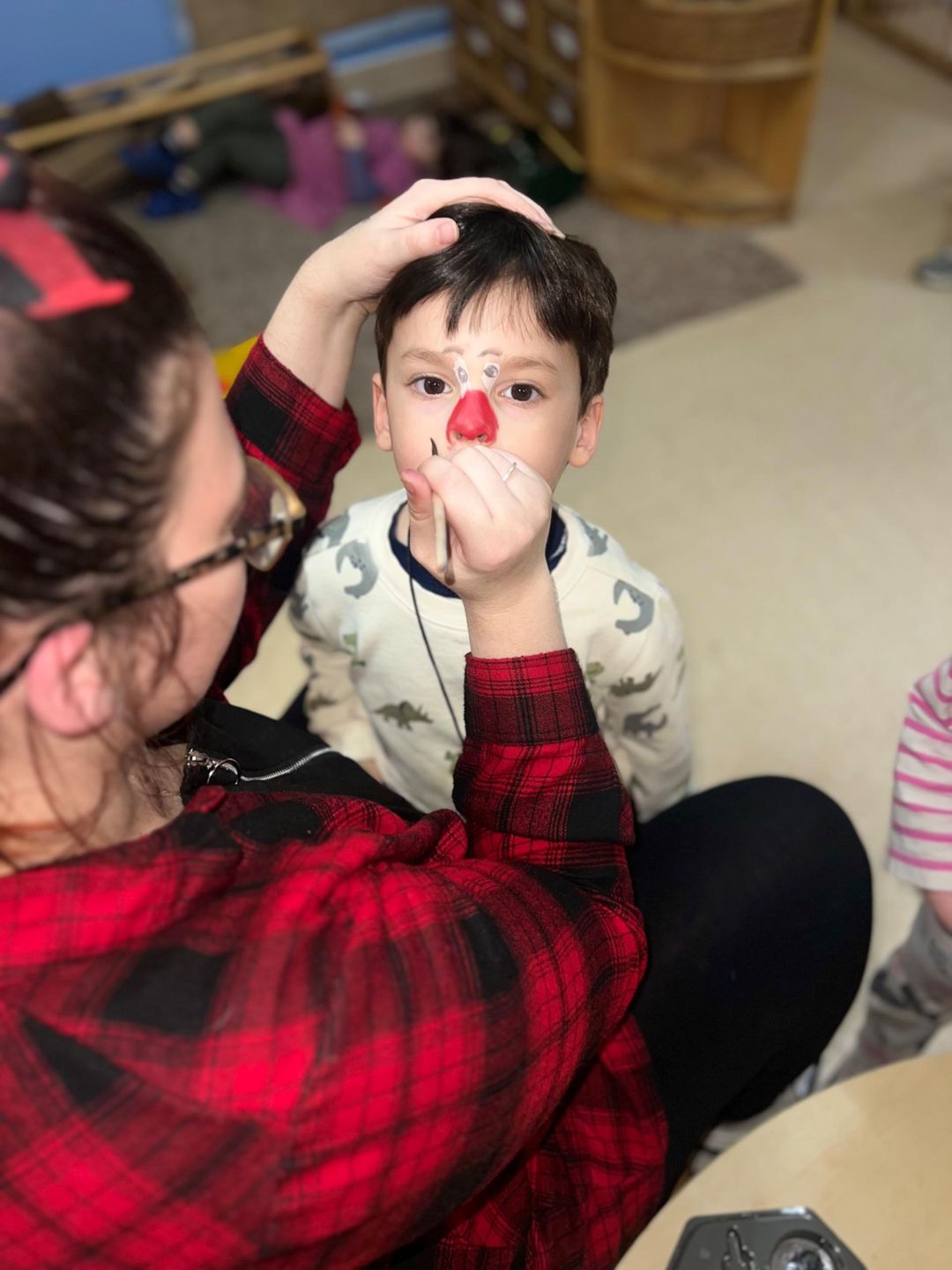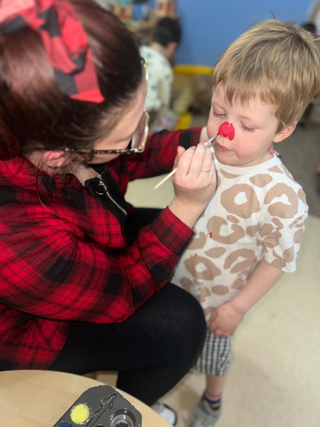 We’ve been busy with all sorts of red-themed activities, from messy play and sensory bins to creating our own red masterpieces at the craft table. The highlight of the day was definitely the face painting, there were so many giggles as the children transformed with bright red noses and fun designs!