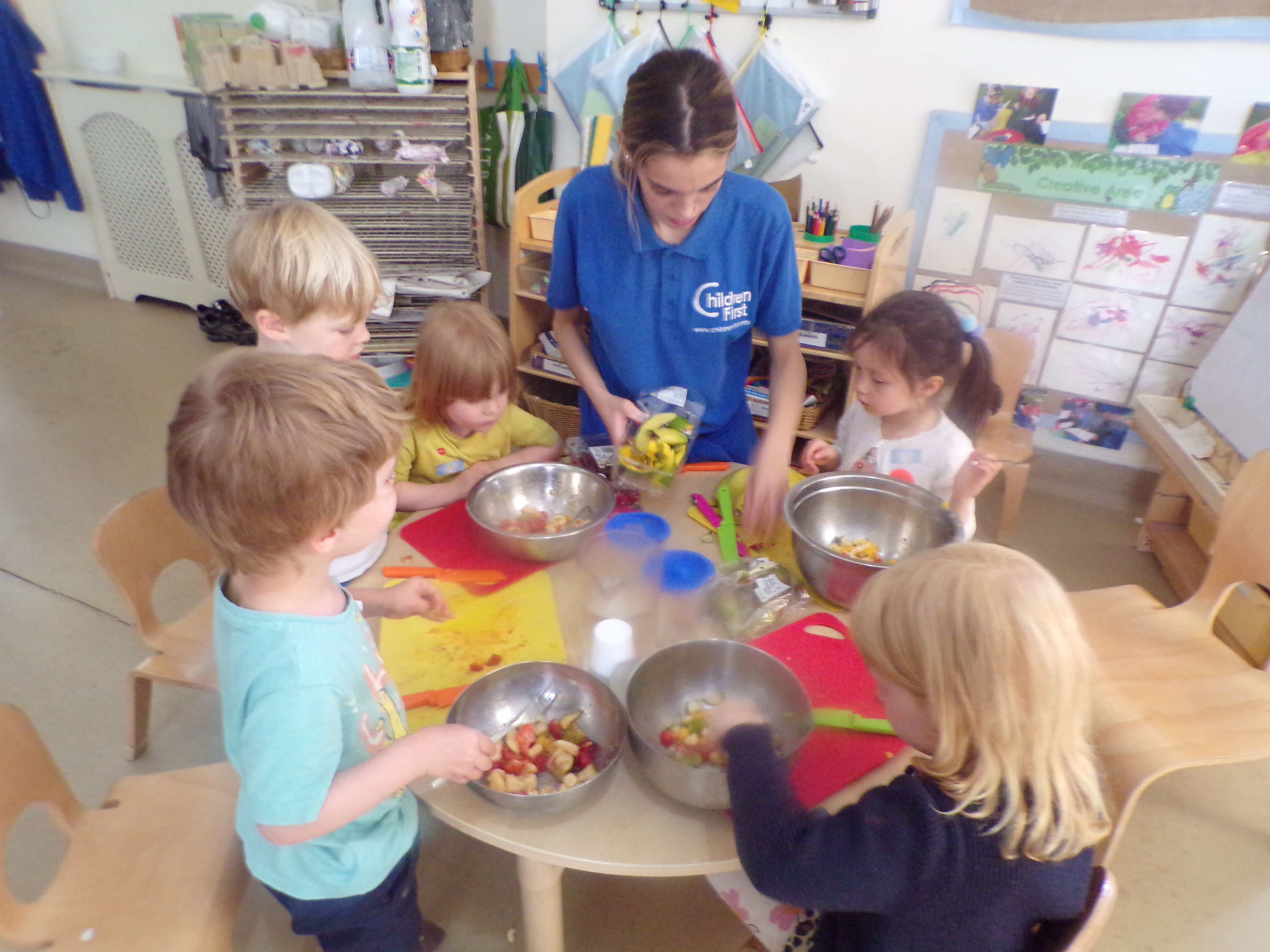 This week the preschool enjoyed key links to their July curriculum topic summer and healthy eating with a fruit cocktail making session.