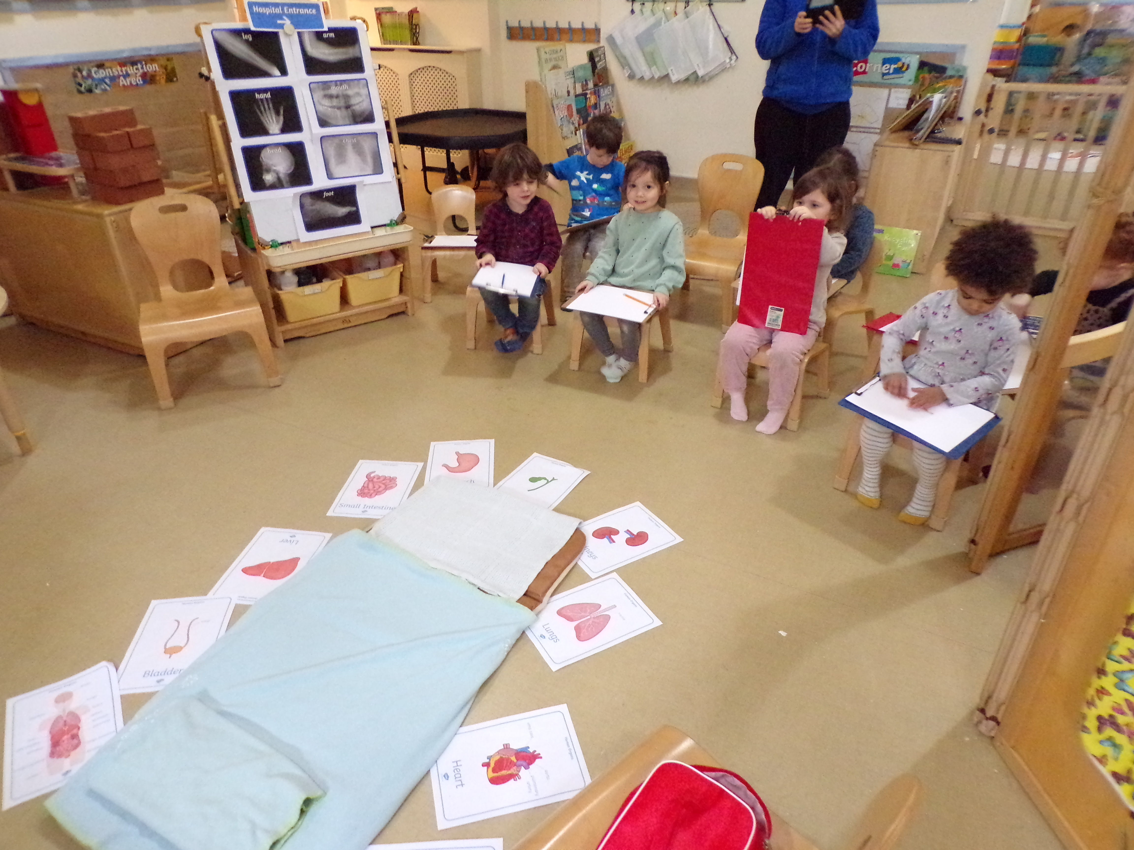 This week to link to our people who help us curriculum topic the preschool had the opportunity to enjoy a surgery role play with their familiar peers and adults. We were very lucky to have doctor parent who shared with us some items for our role play which had been all cleaned for the nursery to use. The children observed and discussed the different organs and body parts and the positive effects of exercise and healthy eating. The children loved extending this into their own play using their imagination linking to their own personal experiences of visiting the doctor’s surgery or hospital.