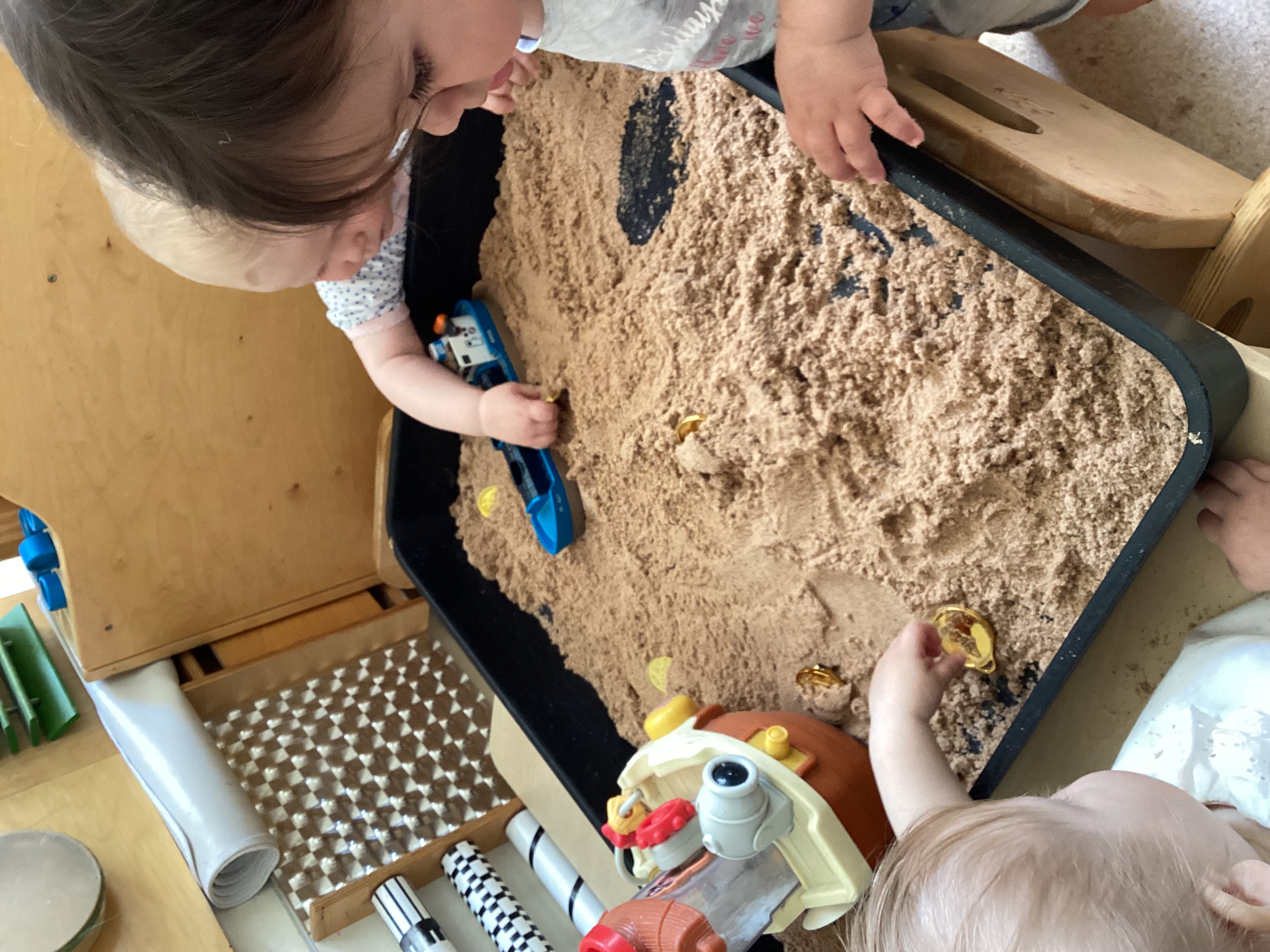 For national treasure day the babies went on a mini treasure hunt, the babies found an old treasure map and discovered some shiny golden coins that were hidden in the sand. The more they dug the more coins they found. The babies were encouraged to put the treasure in the pirate ships to keep it safe. Whilst taking part in this activity the babies listened to a song about pirate ships to make them feel like real life pirates.