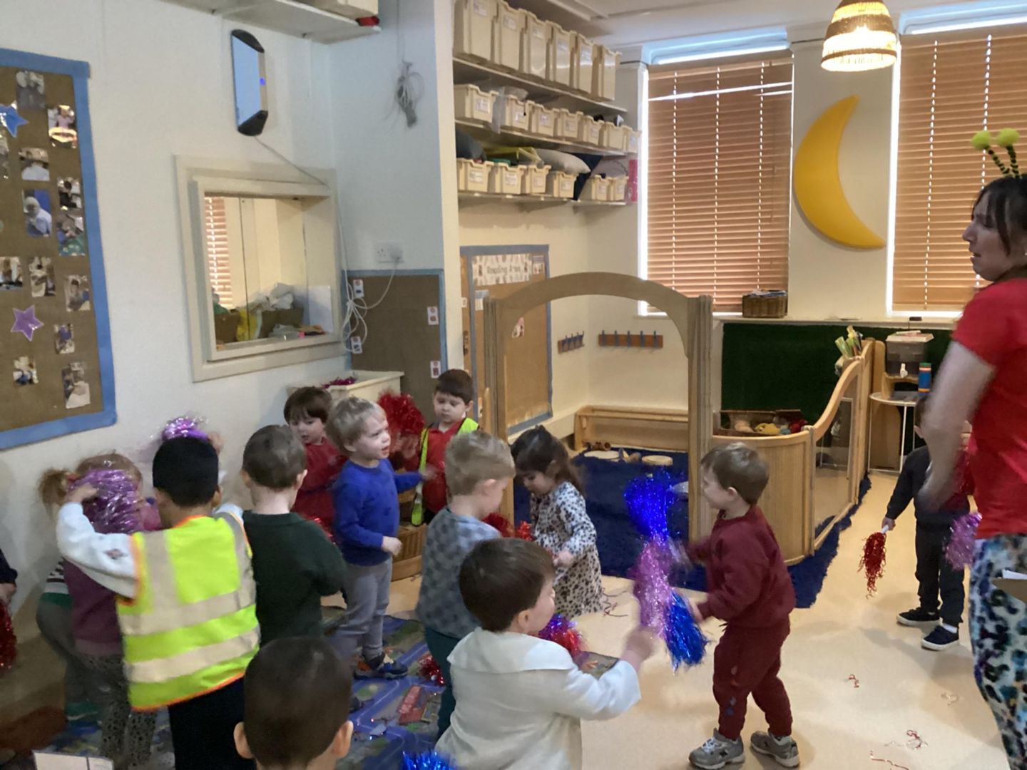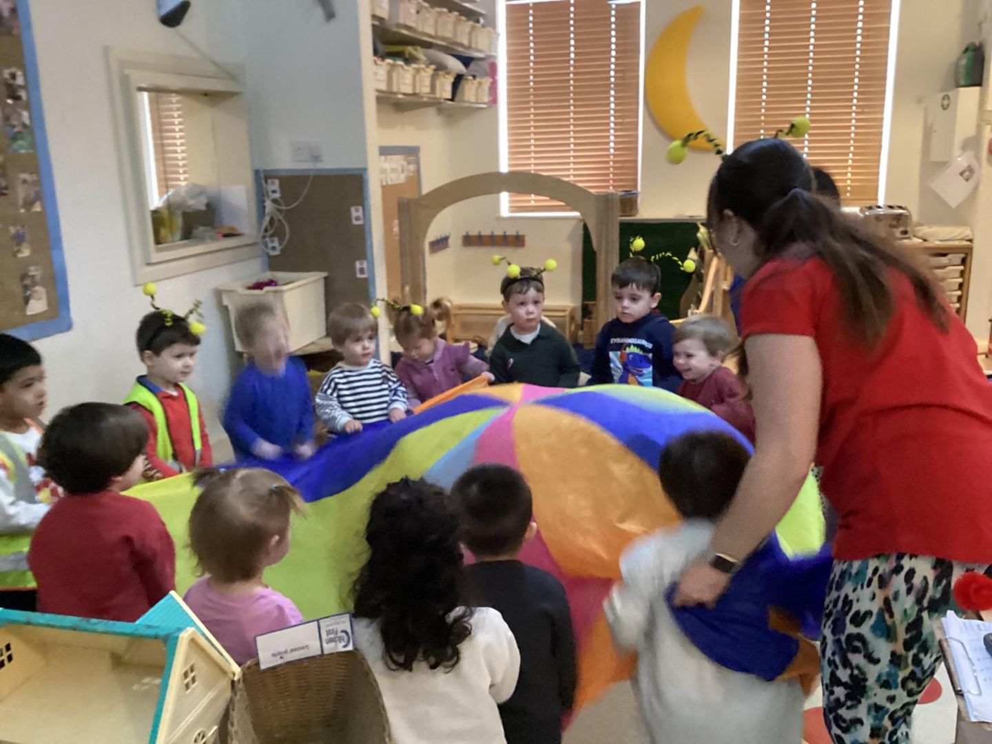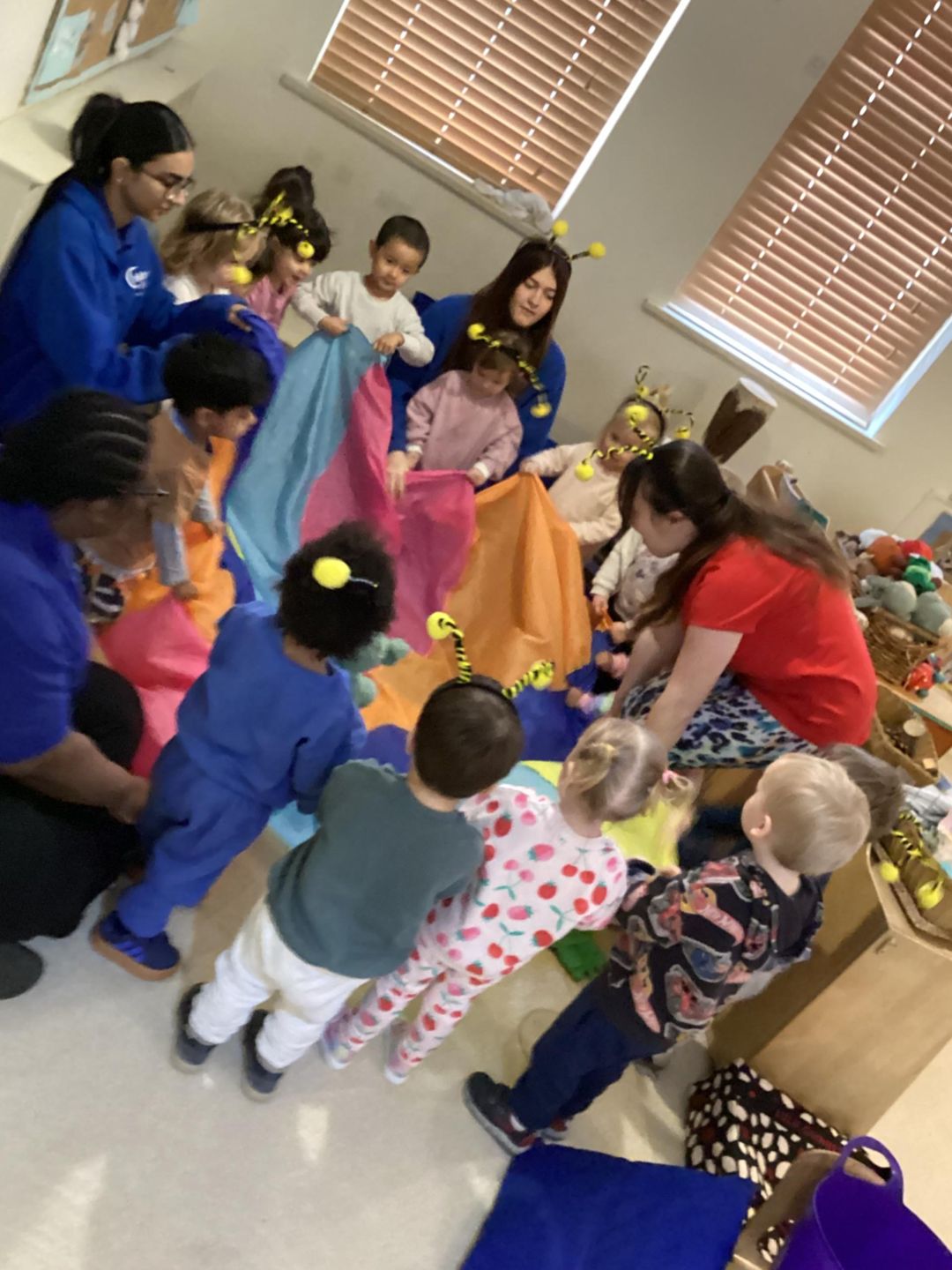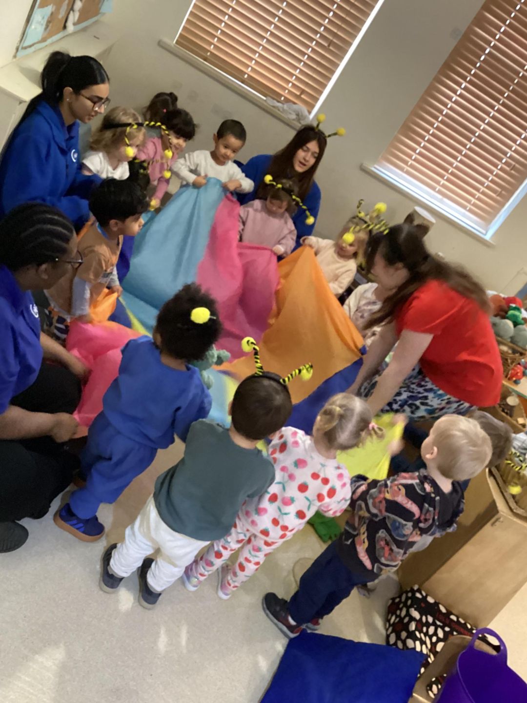 The children used a wide variety of exciting equipment including poms poms, head bands, a parachute and bubbles.