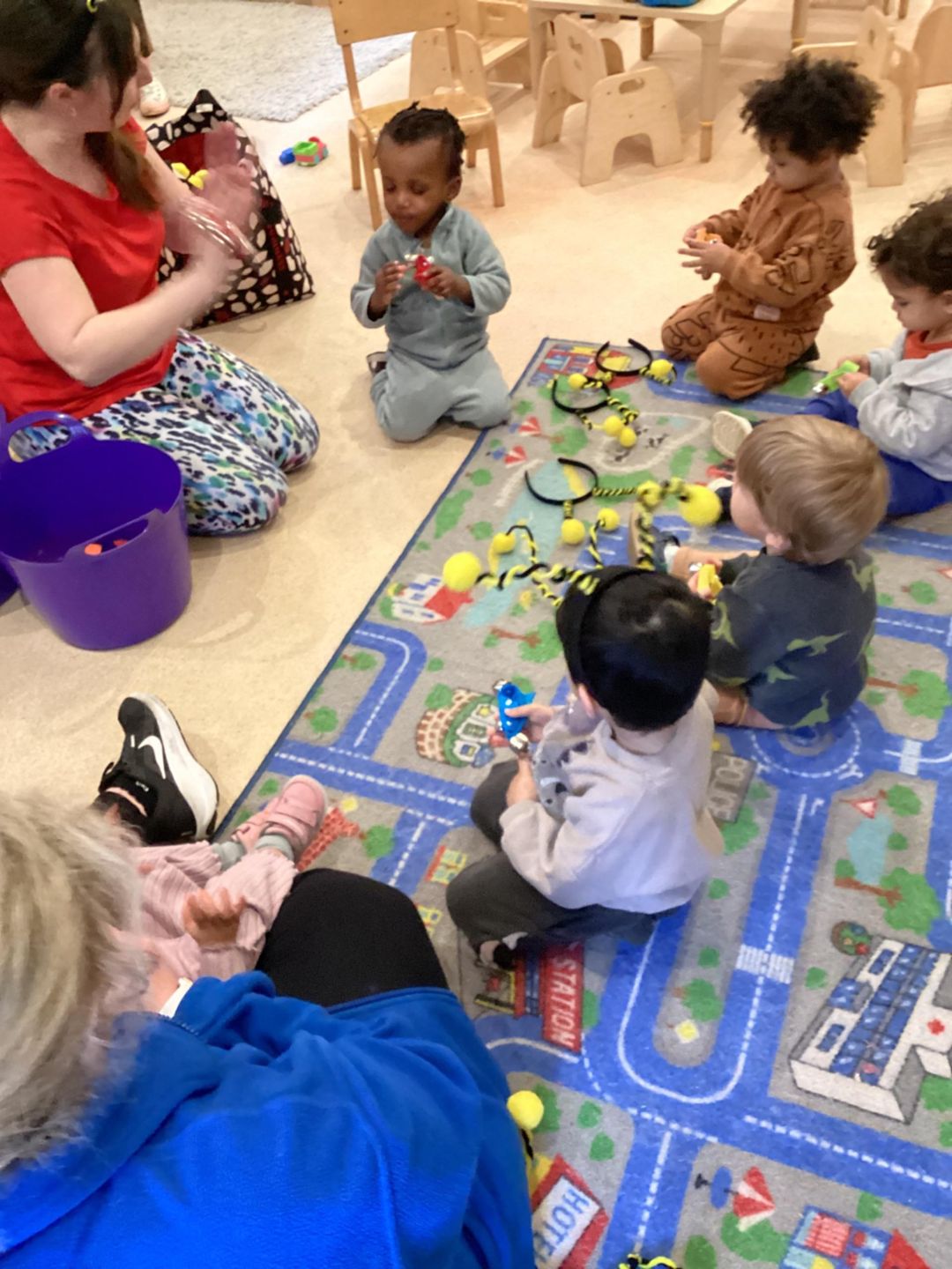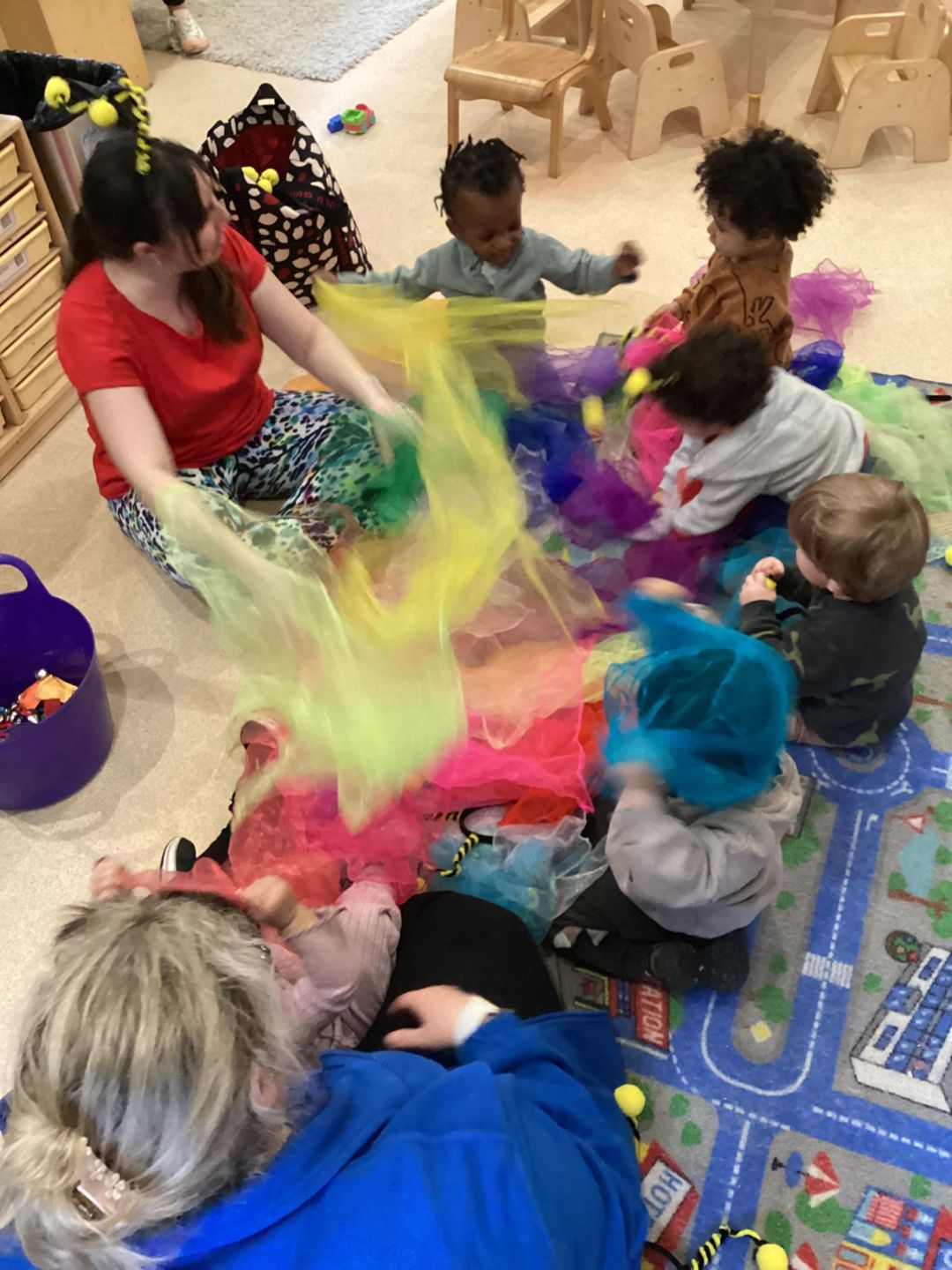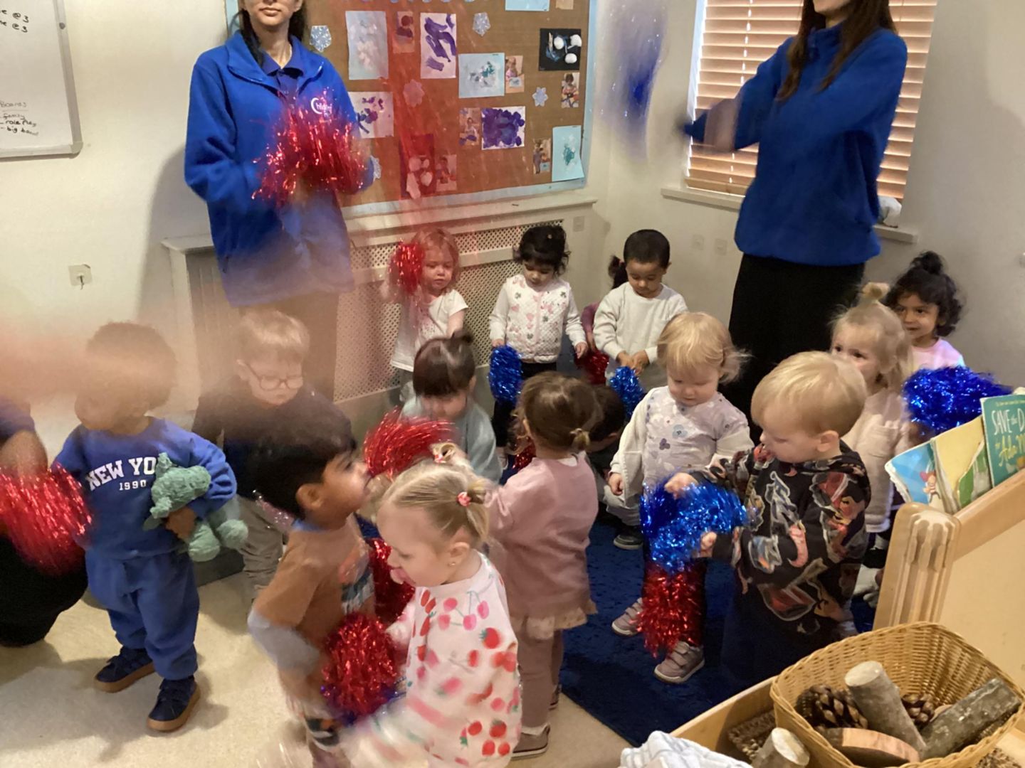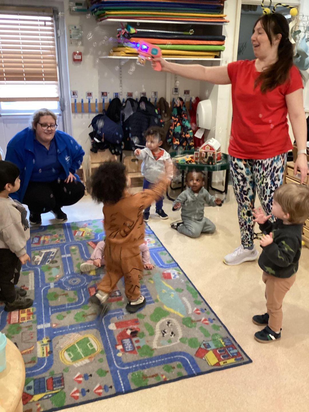 The children used a wide variety of exciting equipment including poms poms, head bands, a parachute and bubbles.