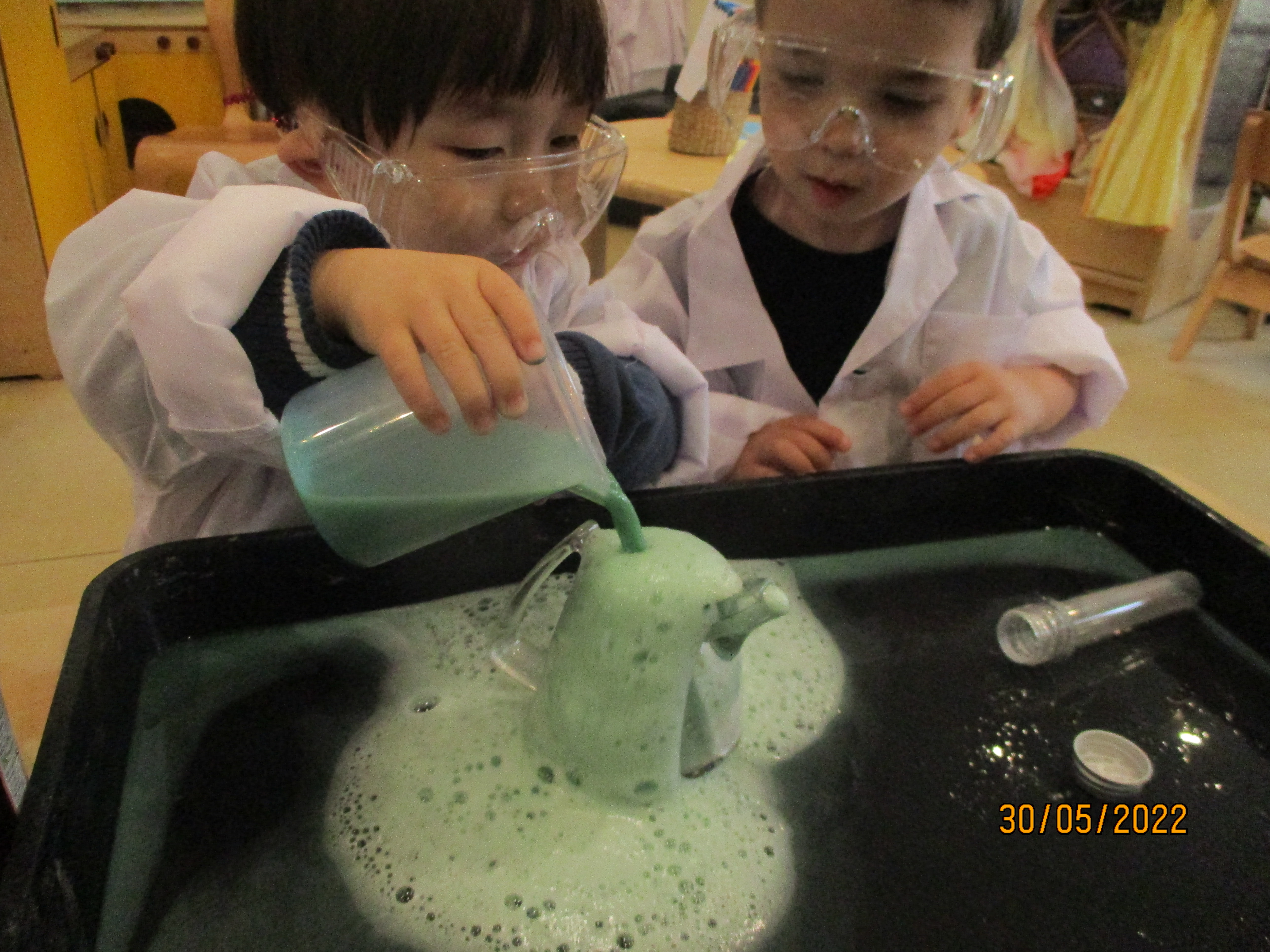 The children used test tubes filled with bicarbonate of soda and poured them into a beaker.