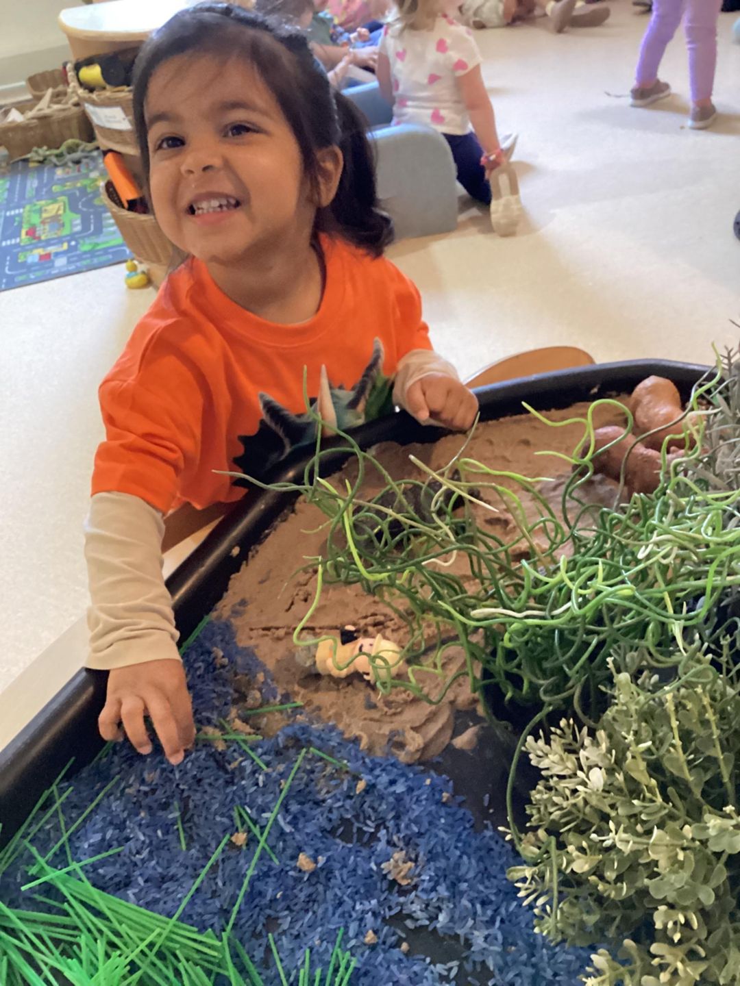 This morning the butterflies read we’re going on a bear hunt in circle time, the children listened attentively and were able to say the repetitive lines of the story. The Butterflies then played and explored with our tuft tray exploring the different areas of the story, such as the swishy grass, deep dark forest and the squelchy mud. Everyone really enjoyed this activity, making lots of ‘bear faces’ and finding all the hidden bears in the tray.