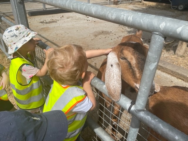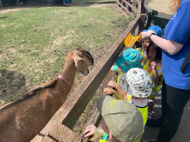 The Butterflies enjoyed taking a bus ride to Brooks Farm. They were excited to get onto the bus, watch the traffic go by and press the button to make the bus stop. When they arrived at the farm the children excitedly pointed out the animals and took a trip round to each enclosure petting, feeding and observing the animals. It was a wonderful experience for the children to see real animals and explore the sounds they make.