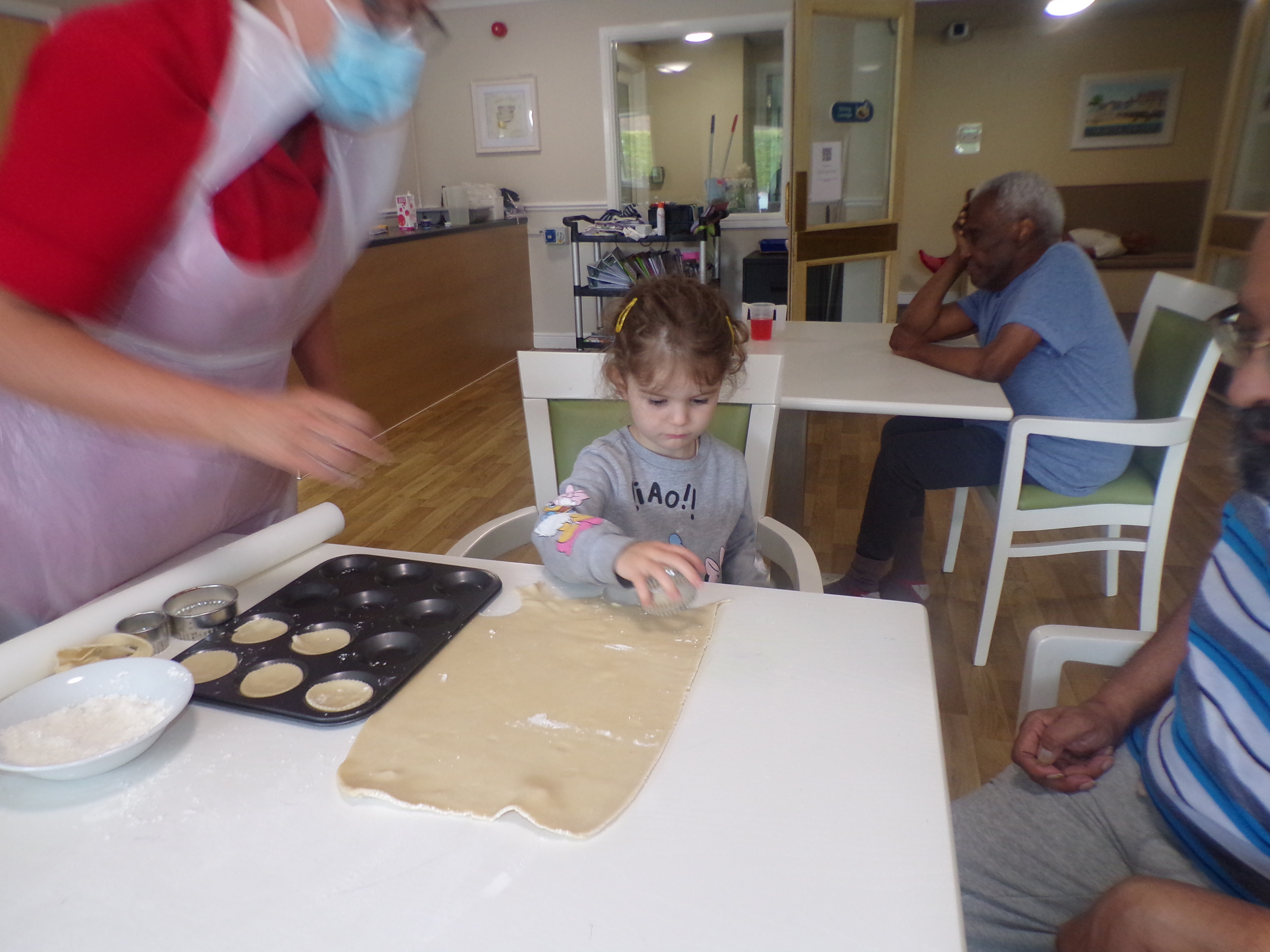 The residents and staff team had prepared a baking station and the children sat alongside the residents to make jam tarts.