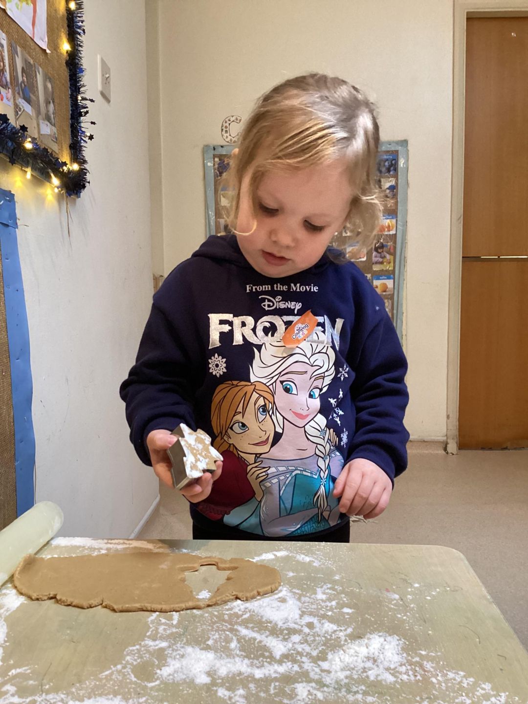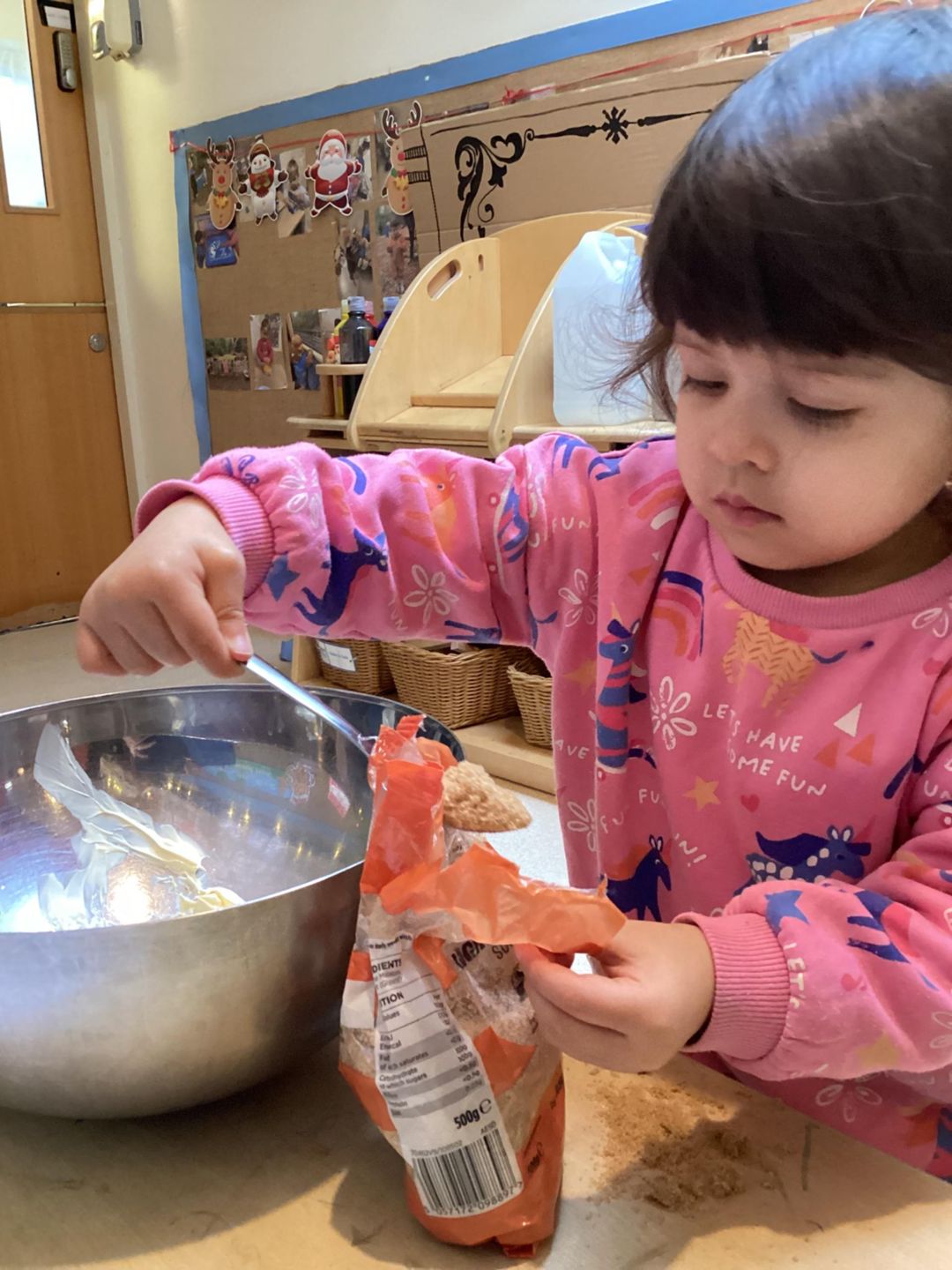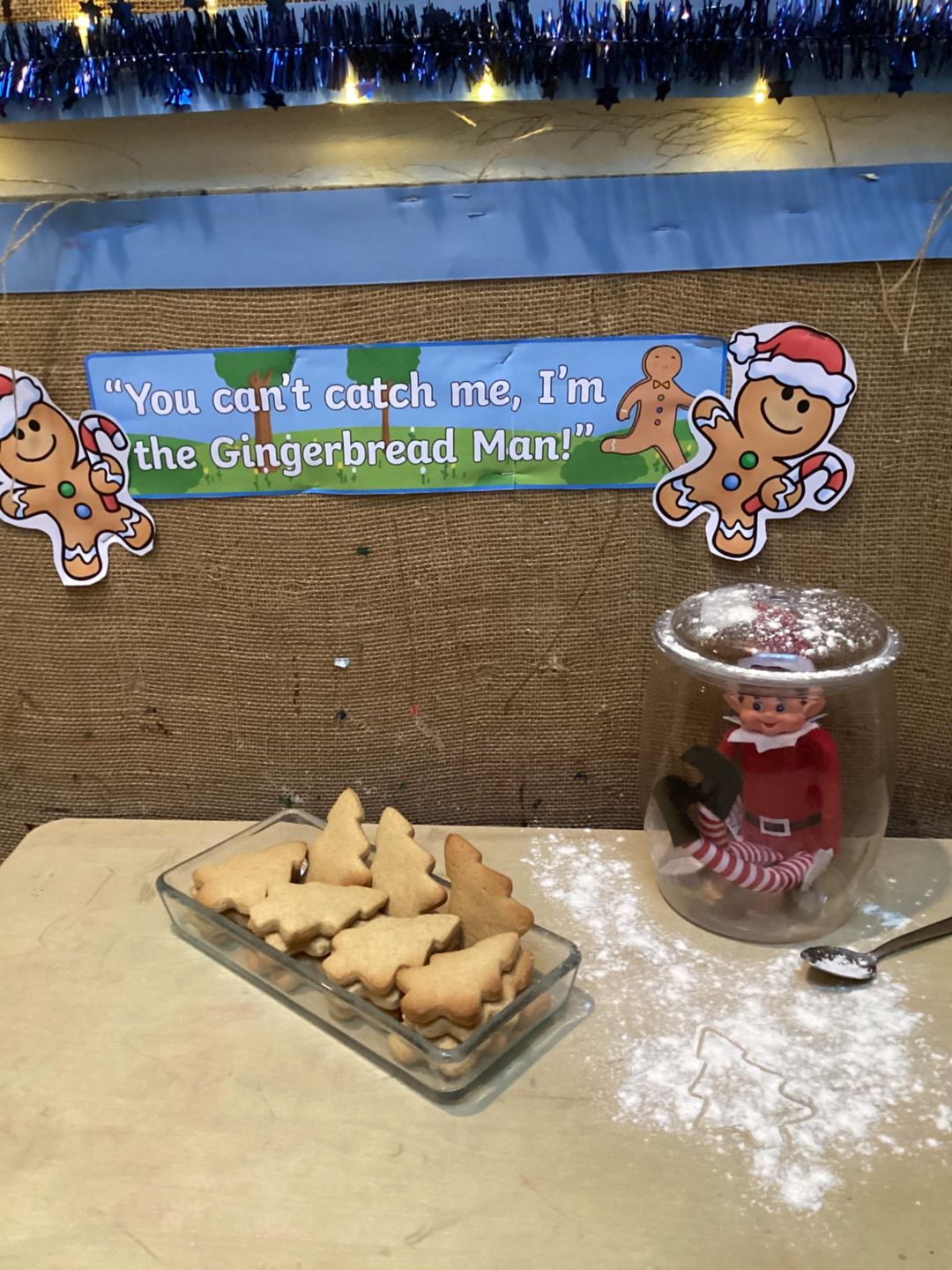 The butterflies had lots of fun assisting Eddie the elf in making some tasty gingerbread Christmas cookies! The butterflies enjoyed mixing the different ingredients together and using resources to make their dough. They used language such as more, less, squash, mix and roll. The children listened brilliantly to the instructions and were able to complete small tasks with little help from the adults! They took turns using the whisk to mix the ingredients and make their own dough.