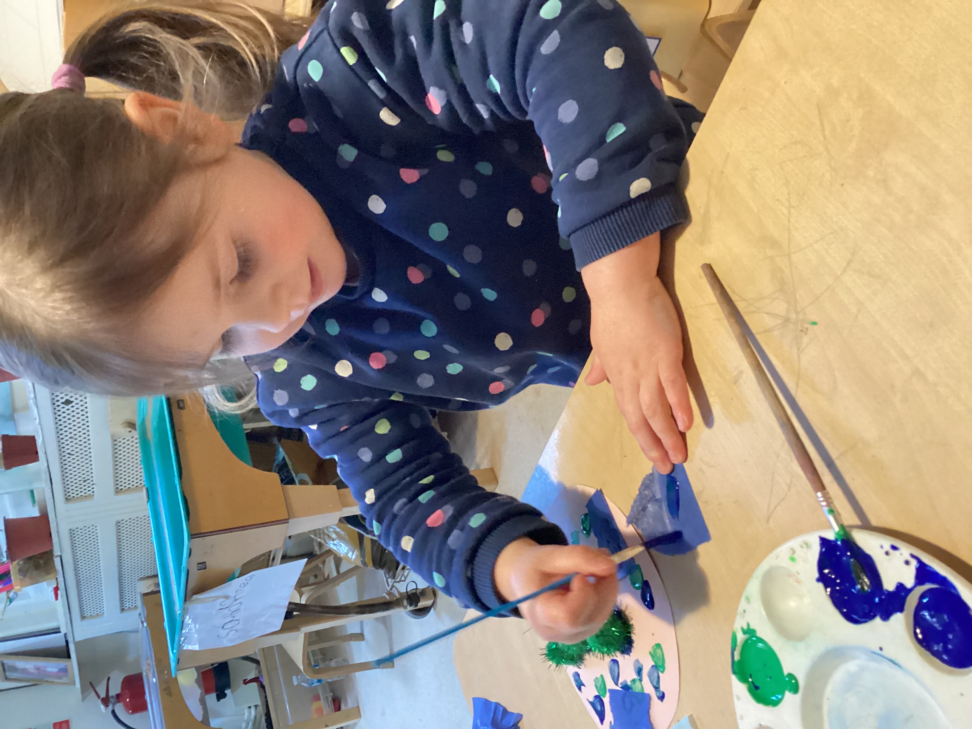 Following on from this the children designed their own interpretations of the world. Painting using different size paint brushes and a range of different colours to create their own earth.
