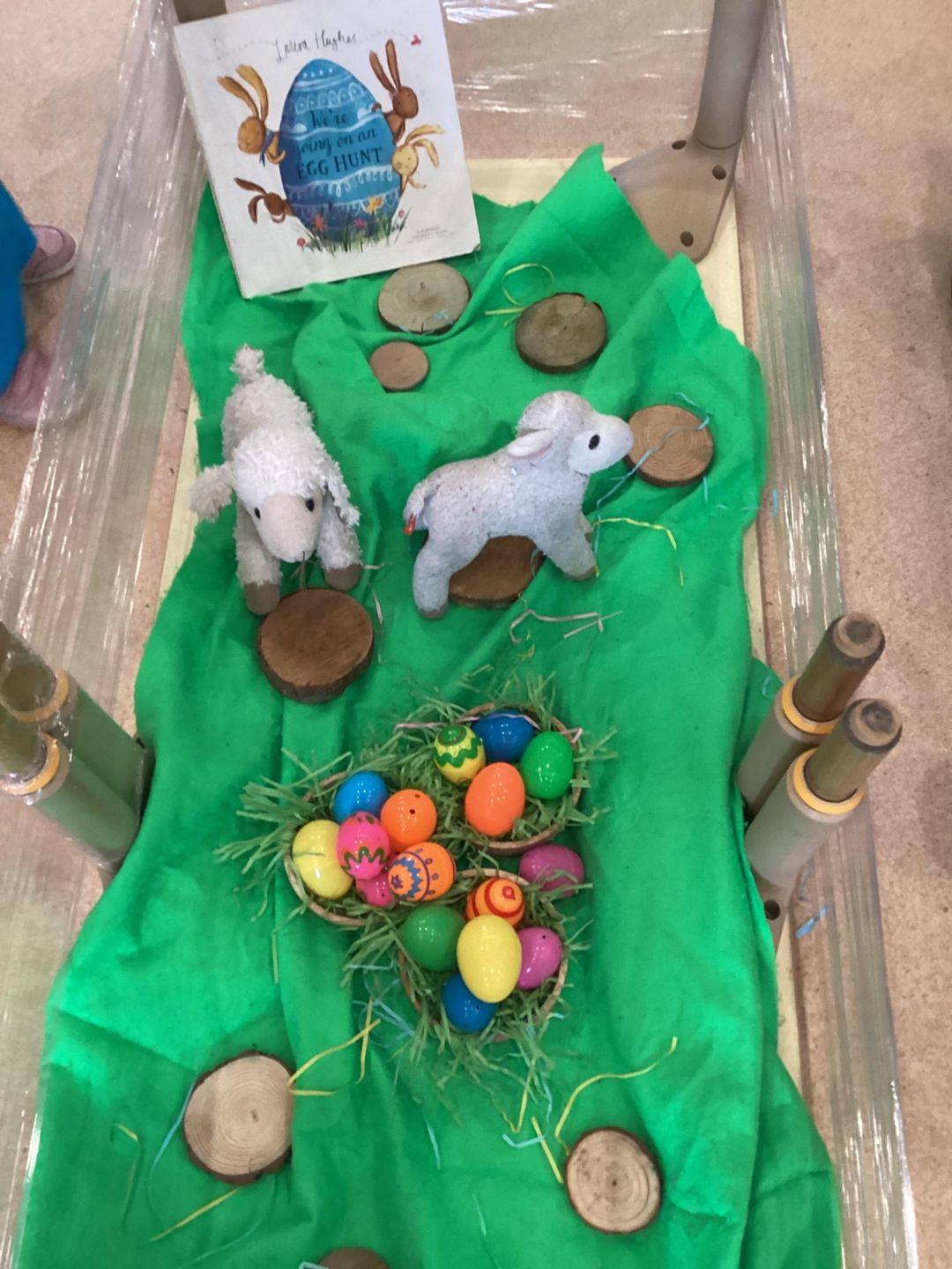 The children selected colours similar to the scene and also enjoyed mixing paints to create new shades, adding their own ideas along the way. Each piece of artwork was unique, showing their creativity and growing confidence. It was a fun and engaging activity that supported their imagination while exploring colour and introducing the Easter holiday to the ladybirds.