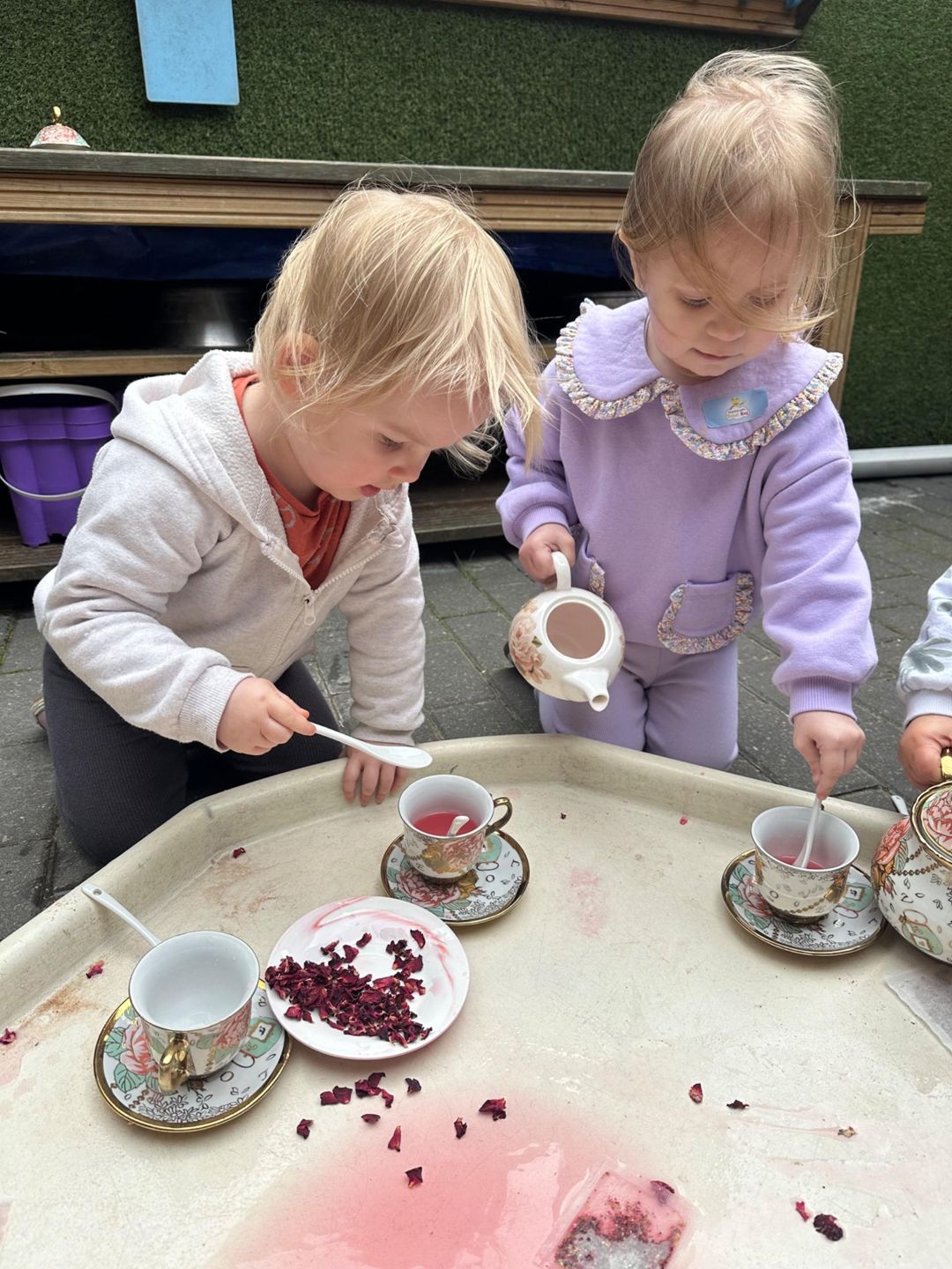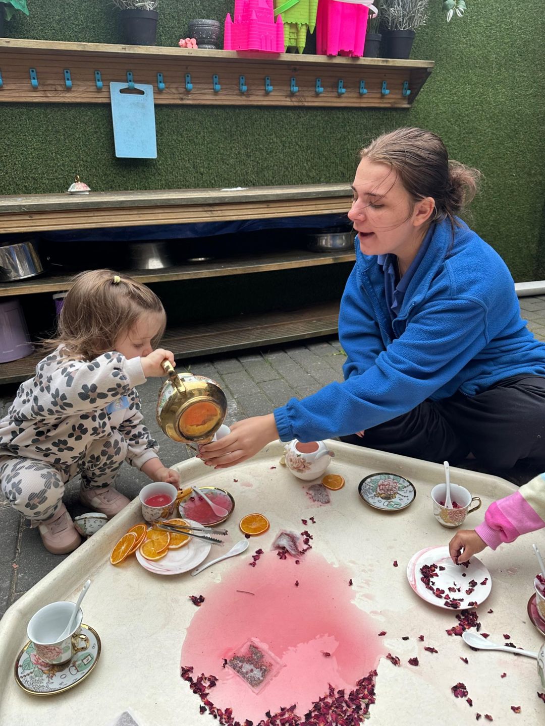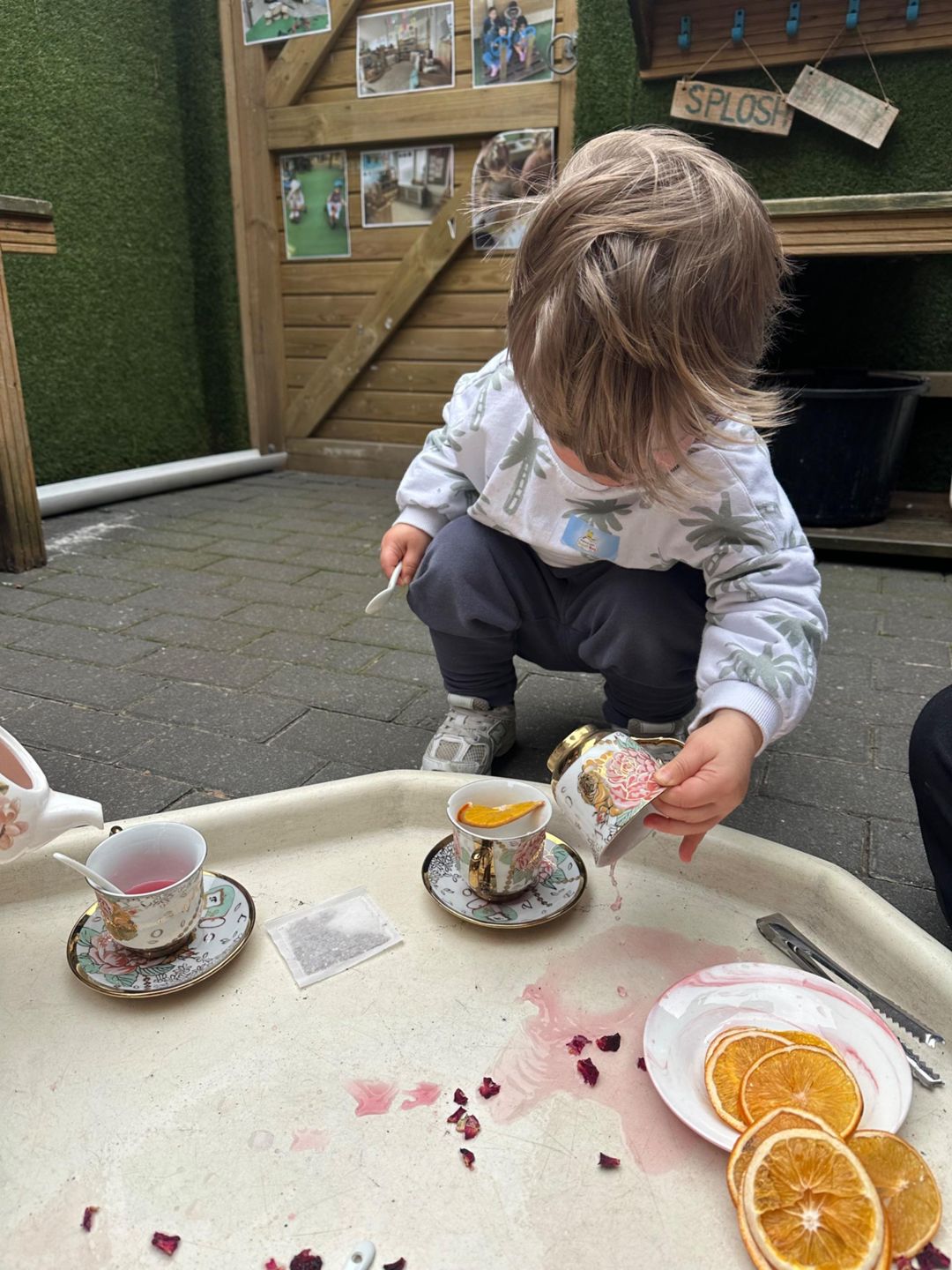 Today, for tell a fairytale day, the Butterflies hosted their own fairy tale tea party using a real China tea set! With gentle guidance and risk assessing throughout, the children explored how to handle fragile objects safely, pour carefully, and look after special things.