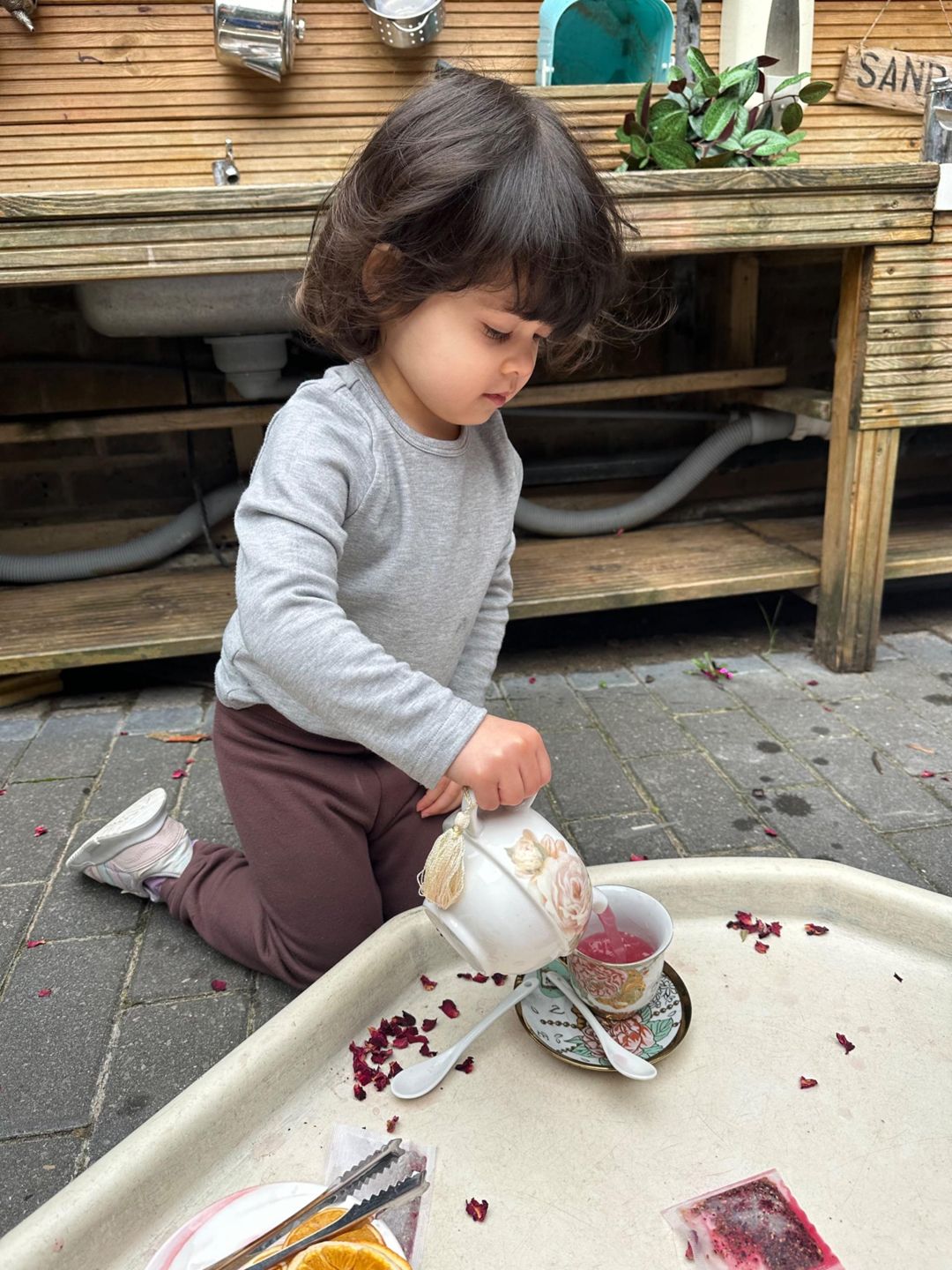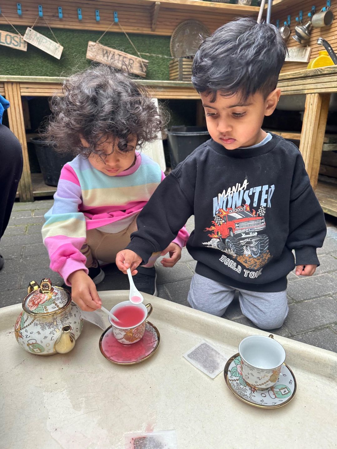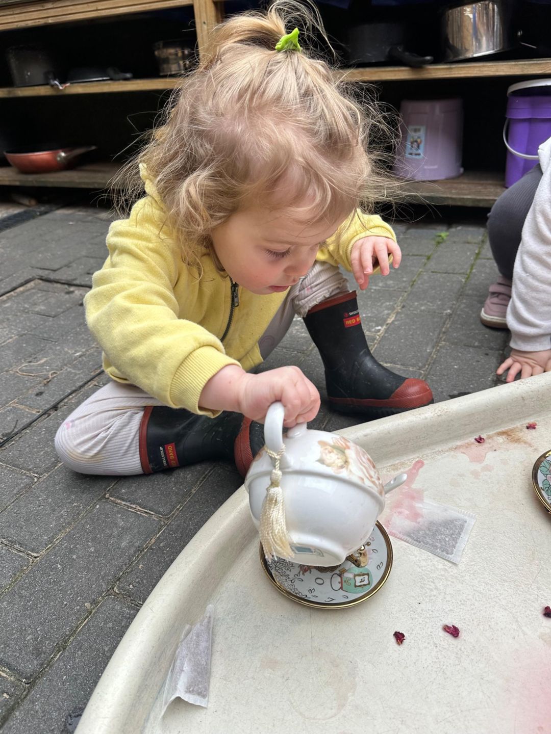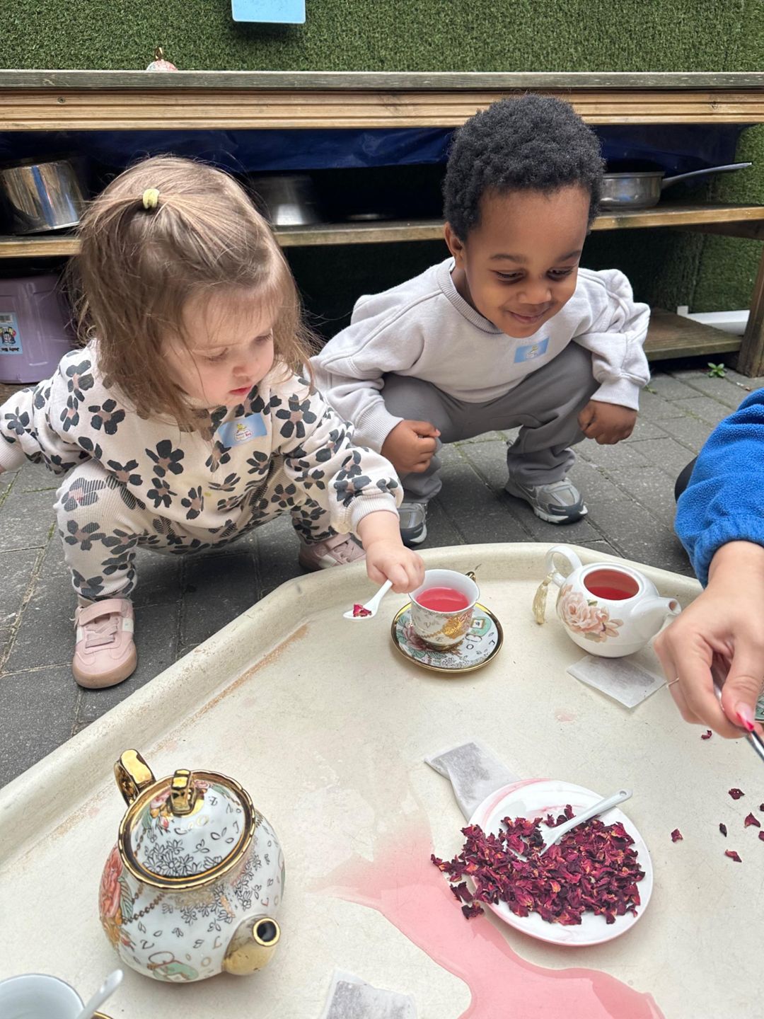 Today, for tell a fairytale day, the Butterflies hosted their own fairy tale tea party using a real China tea set! With gentle guidance and risk assessing throughout, the children explored how to handle fragile objects safely, pour carefully, and look after special things.