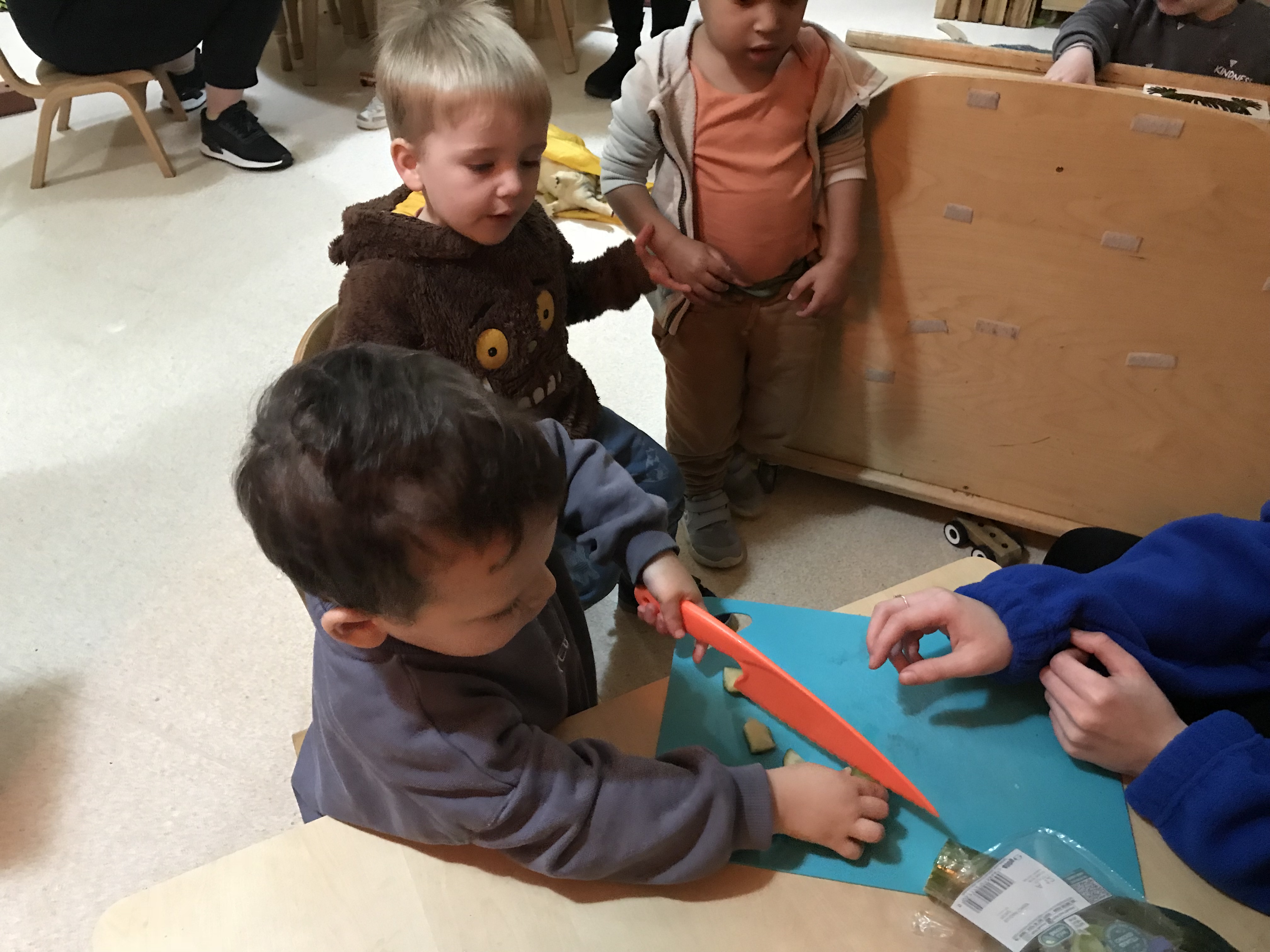 They used children's knives to cut the fruit into smaller pieces.