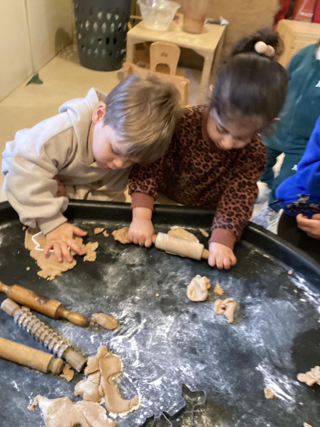 To celebrate our love for reading, the butterflies enjoyed a special tuff tray of one of their favourite stories… the gingerbread man! The children rolled the playdough to make their own gingerbread men while reciting 'Run run as fast as you can you can’t catch me I’m the gingerbread man!’