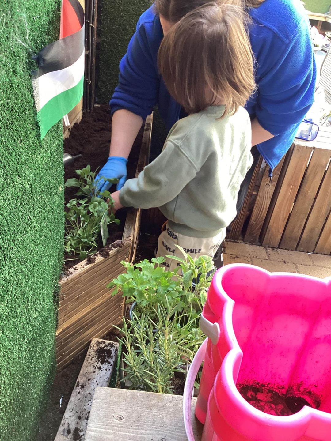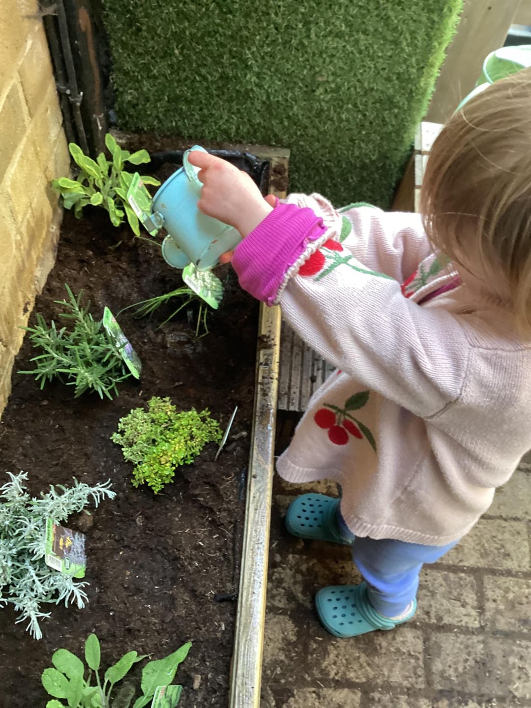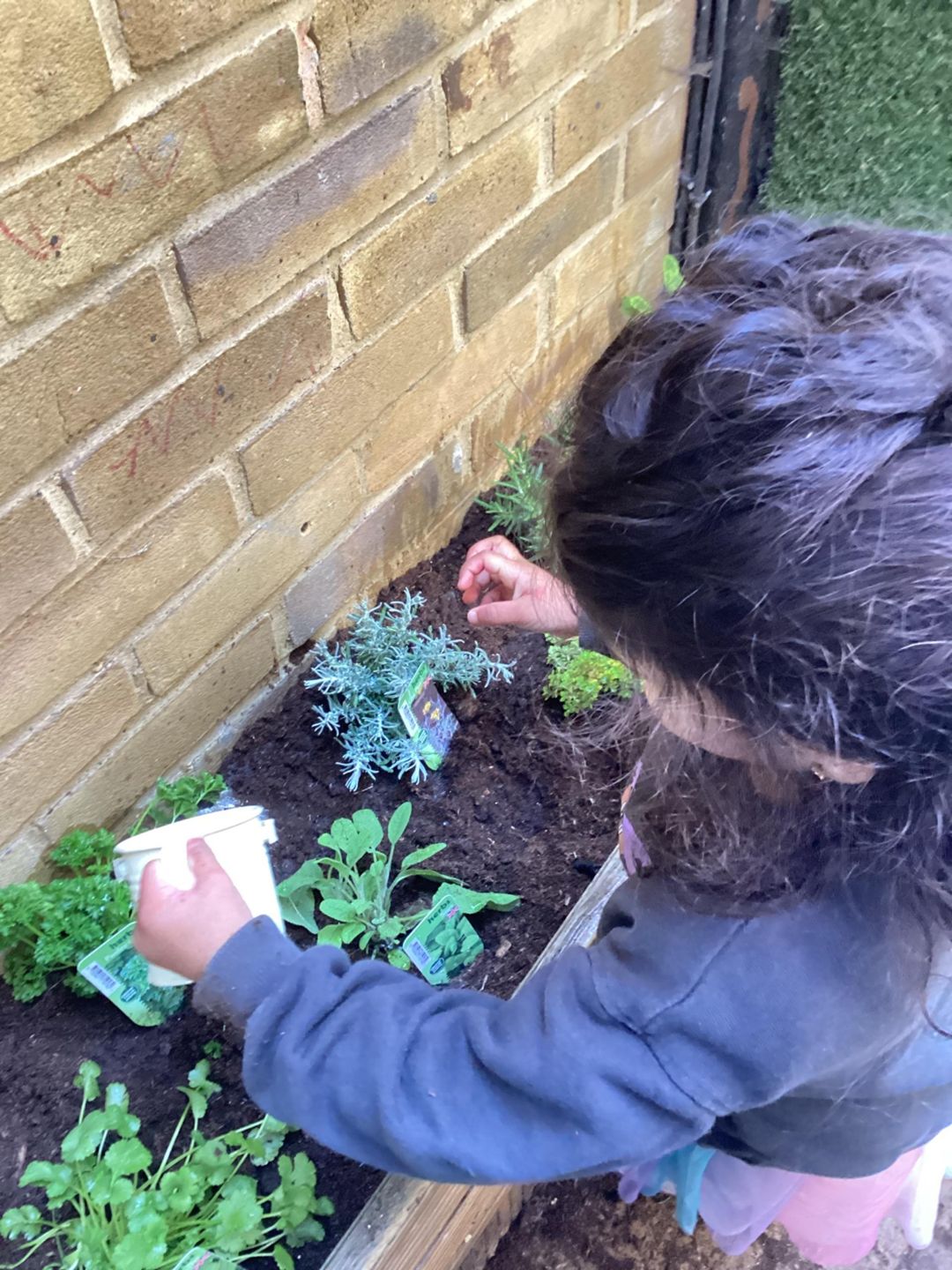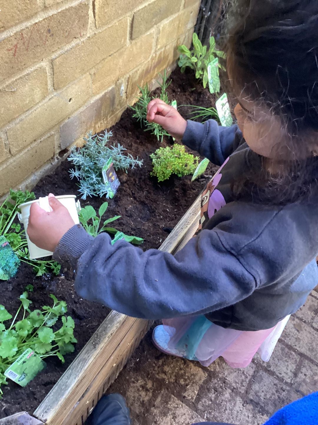 The grasshoppers busily set to work planting their delicate herbs, using their hand and eye co-ordination. First, they grasped a small shovel and dug into the soil, turning over the soil and mixing in fresh, dark compost that smelled earthy and alive. Once the ground was soft and ready, they carefully made small holes, each one just the right size for the herbs to settle into. Gently, they lifted the herbs from their pots, loosening the roots with great care before placing them into the waiting soil. With soft, precise movements, they patted the soil around each plant, securing them firmly so they would stand strong and safe. Finally, they sprinkled cool water over the herbs, watching as droplets soaked into the soil, ensuring the young plants stayed hydrated and ready to grow.