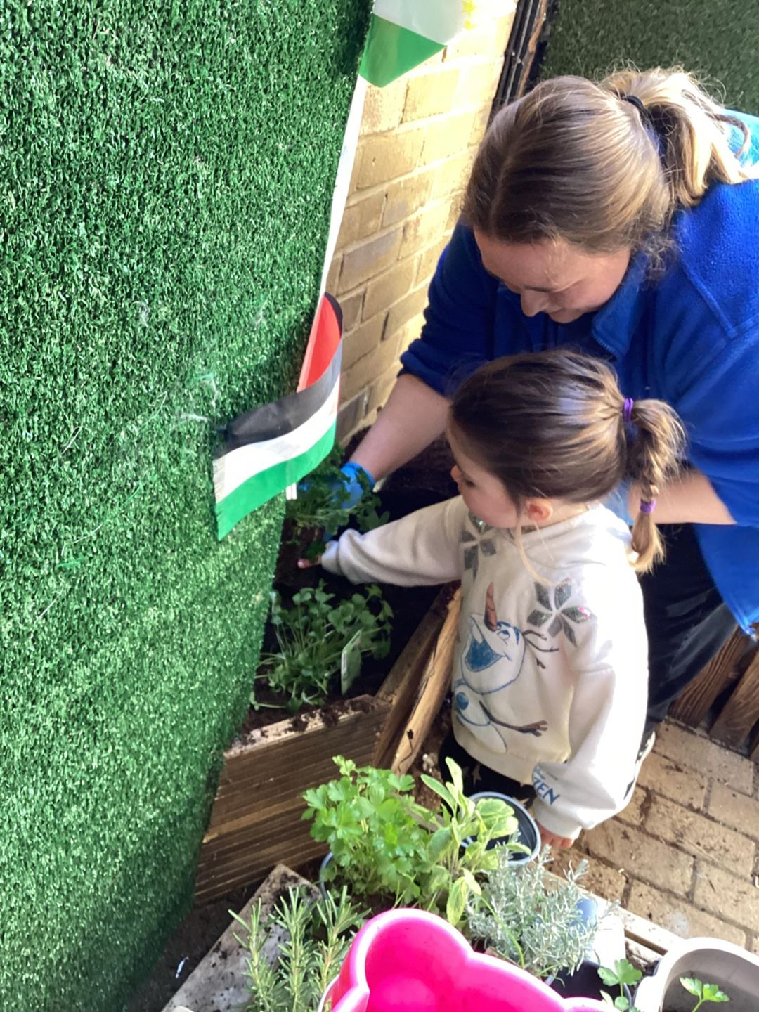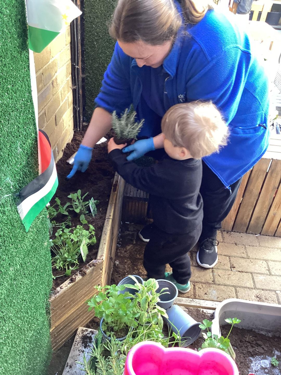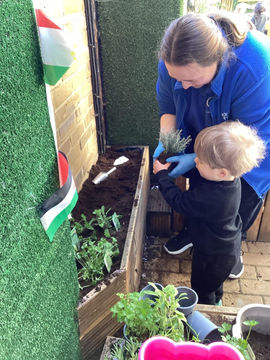 The grasshoppers busily set to work planting their delicate herbs, using their hand and eye co-ordination. First, they grasped a small shovel and dug into the soil, turning over the soil and mixing in fresh, dark compost that smelled earthy and alive. Once the ground was soft and ready, they carefully made small holes, each one just the right size for the herbs to settle into. Gently, they lifted the herbs from their pots, loosening the roots with great care before placing them into the waiting soil. With soft, precise movements, they patted the soil around each plant, securing them firmly so they would stand strong and safe. Finally, they sprinkled cool water over the herbs, watching as droplets soaked into the soil, ensuring the young plants stayed hydrated and ready to grow.
