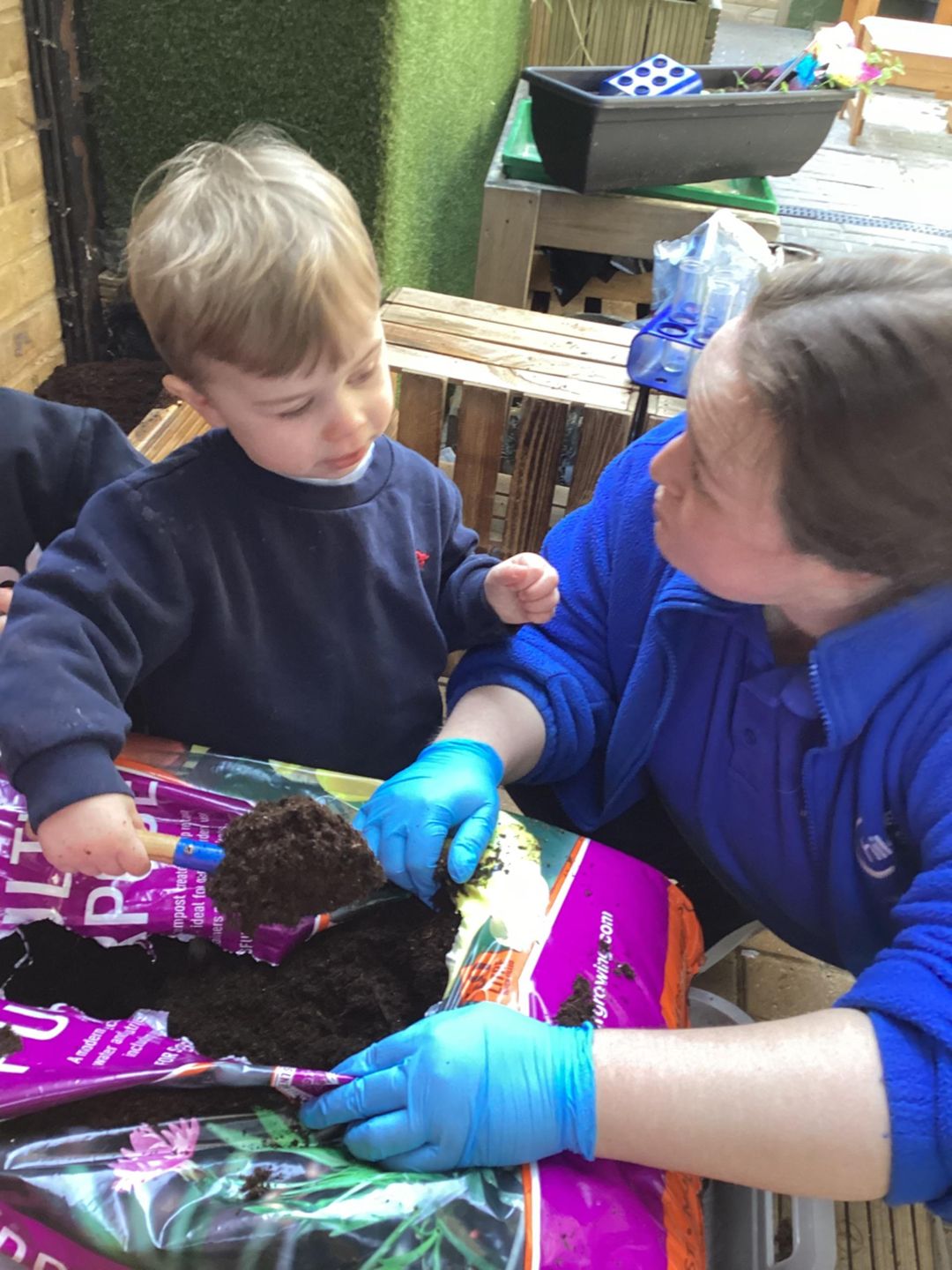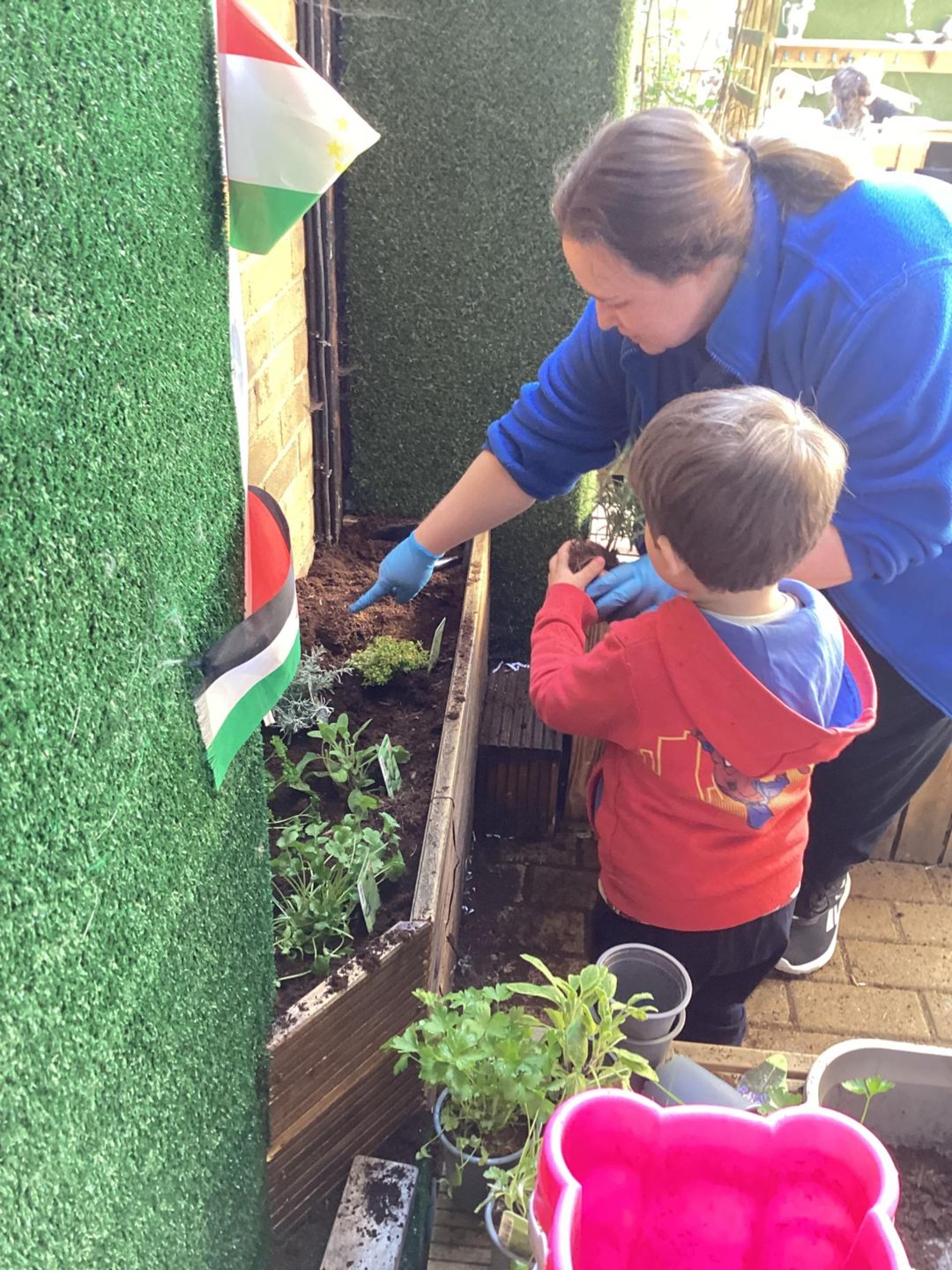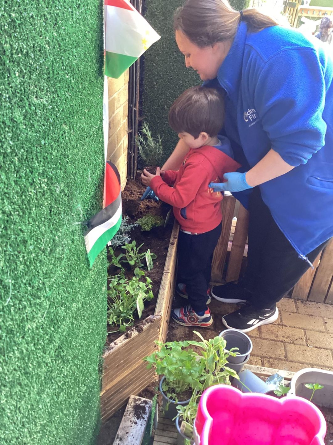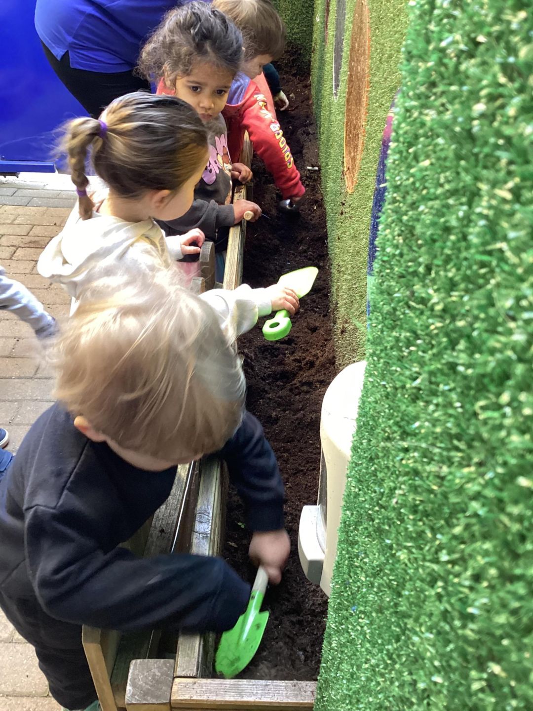 The grasshoppers busily set to work planting their delicate herbs, using their hand and eye co-ordination. First, they grasped a small shovel and dug into the soil, turning over the soil and mixing in fresh, dark compost that smelled earthy and alive. Once the ground was soft and ready, they carefully made small holes, each one just the right size for the herbs to settle into. Gently, they lifted the herbs from their pots, loosening the roots with great care before placing them into the waiting soil. With soft, precise movements, they patted the soil around each plant, securing them firmly so they would stand strong and safe. Finally, they sprinkled cool water over the herbs, watching as droplets soaked into the soil, ensuring the young plants stayed hydrated and ready to grow.