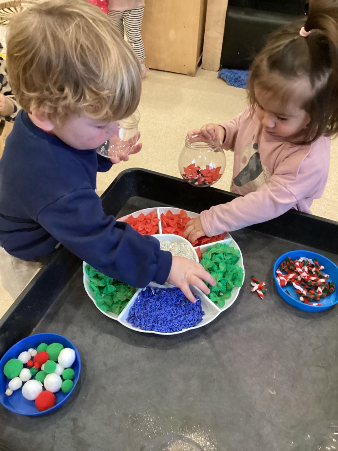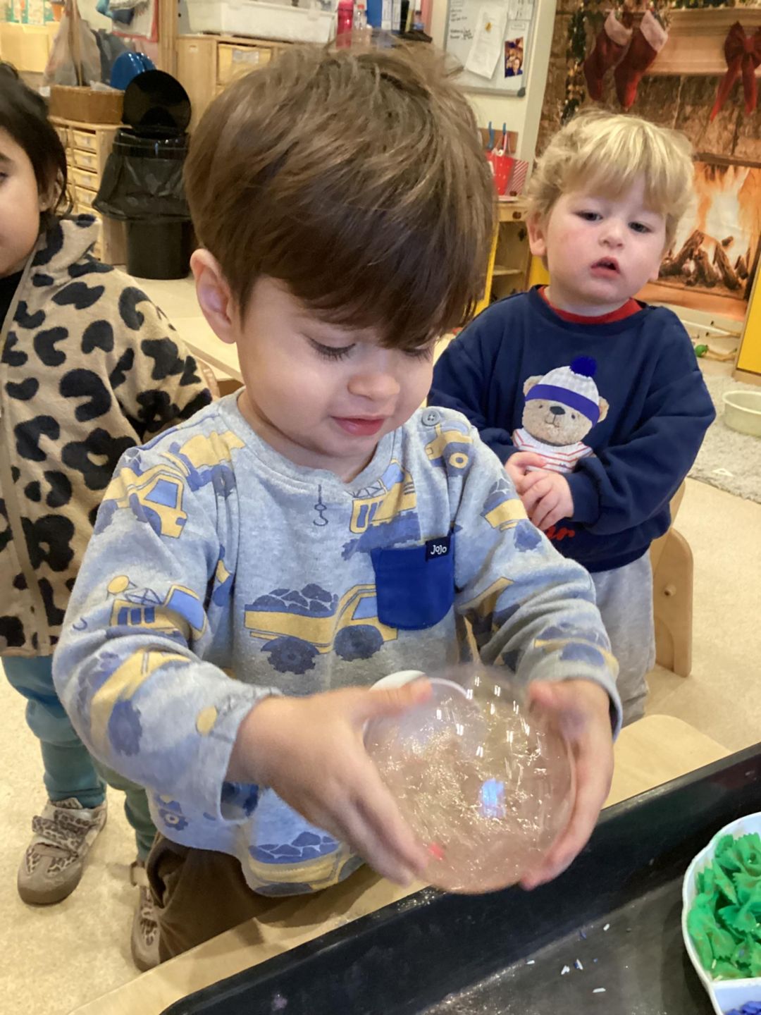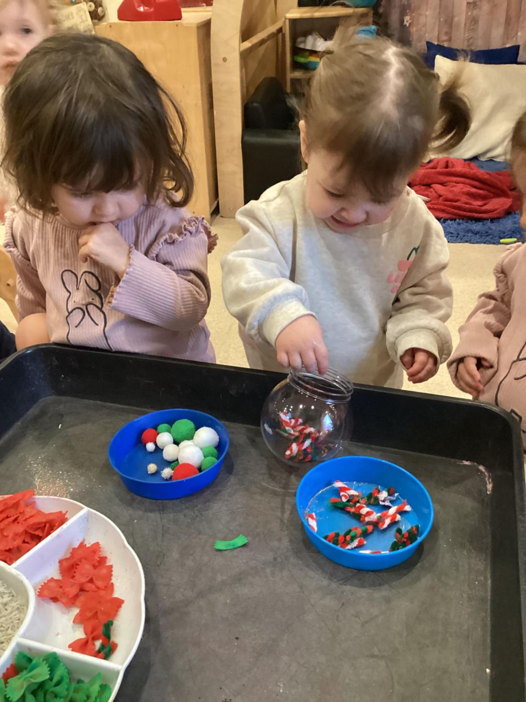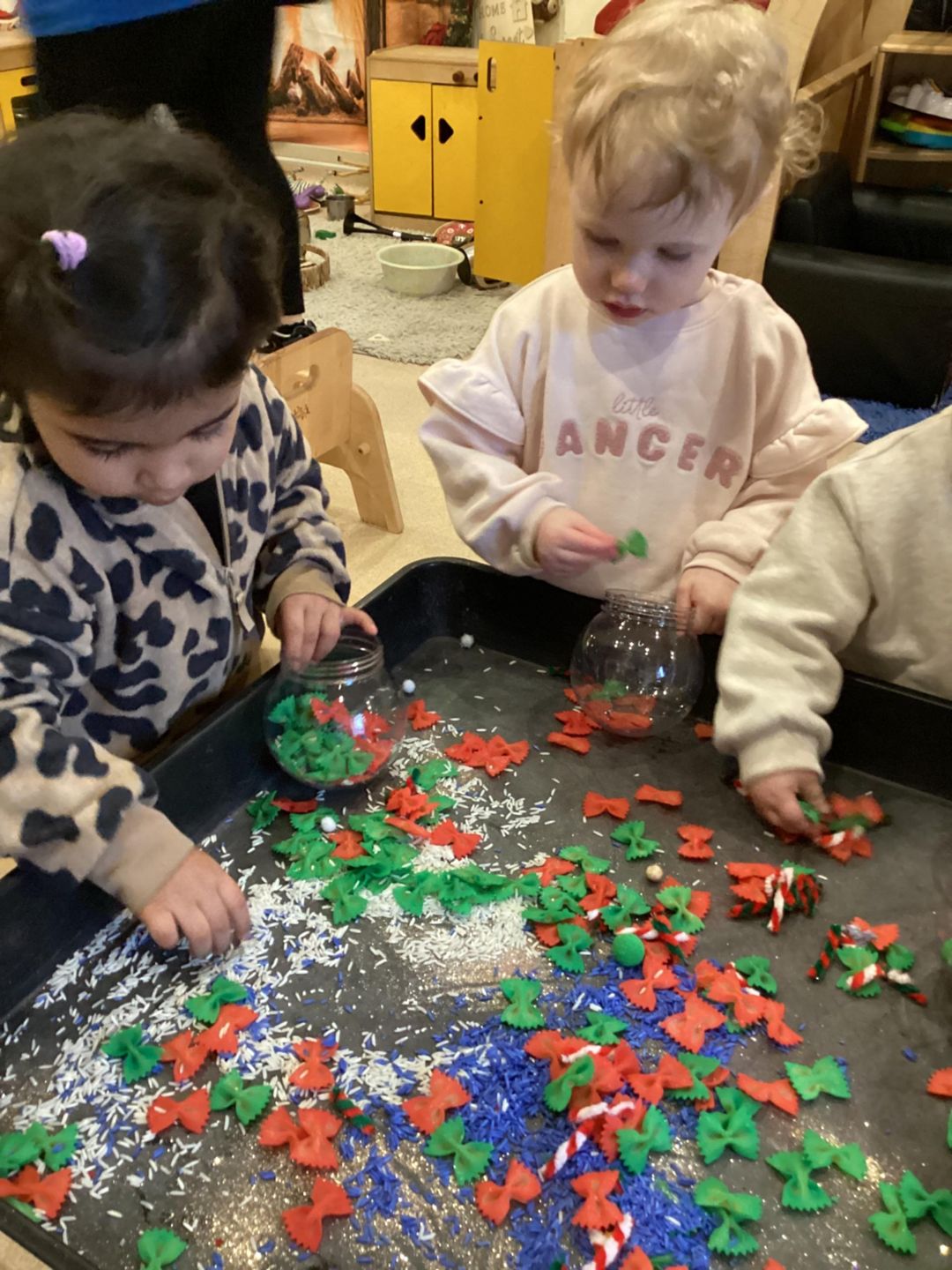 The Ladybirds have enjoyed a sensory experience whilst developing their fine motor skills this week. The children used a variety of festive themed ingredients and water to make their own snow globes! The children had excellent control when pouring the water and placing he objects into the globes. When the globes were finished, the children had lots of fun exploring the complete globes by shaking them and watching the objects sparkle and move!